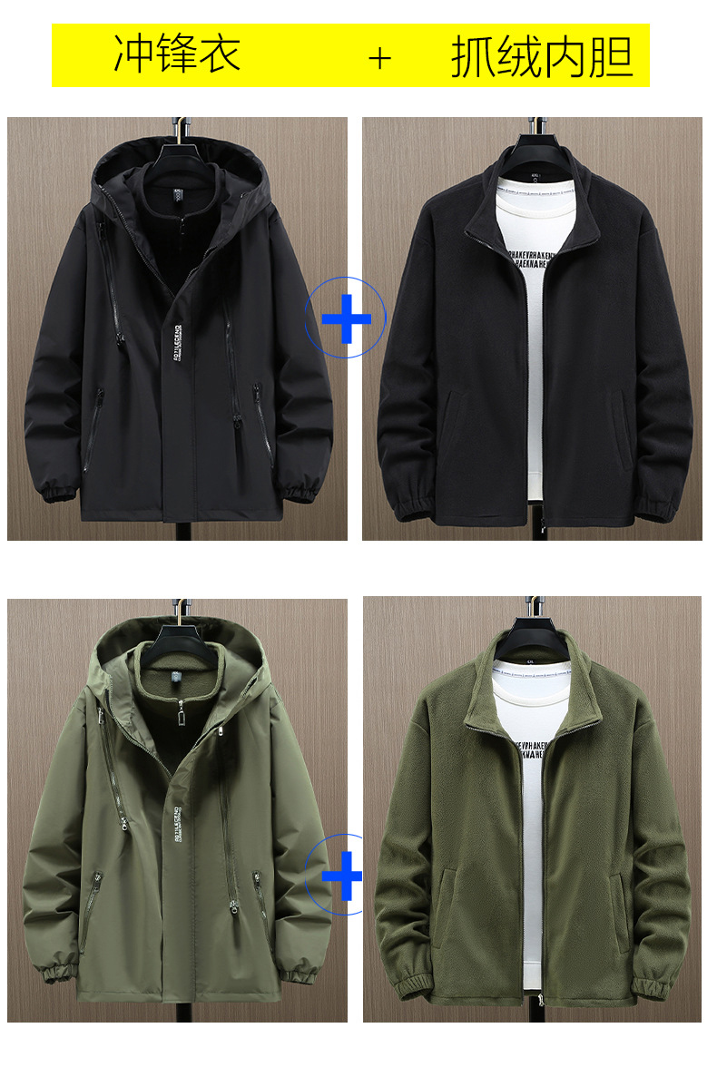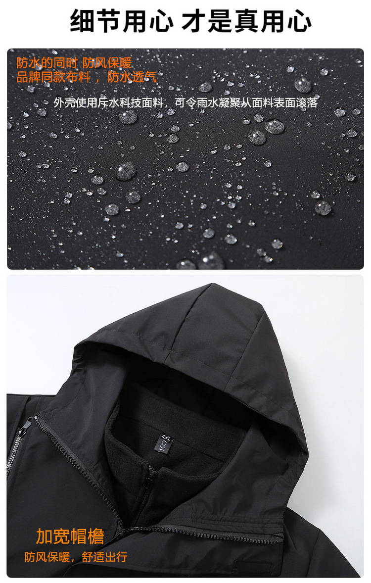 Плюс Удобрение Плюс Размер Зарядки Одежда Мужская Съемная осенне-зимняя Толстая куртка «Три в одном» на флисовой подкладке Пухлая куртка большого размера с защитой от трех