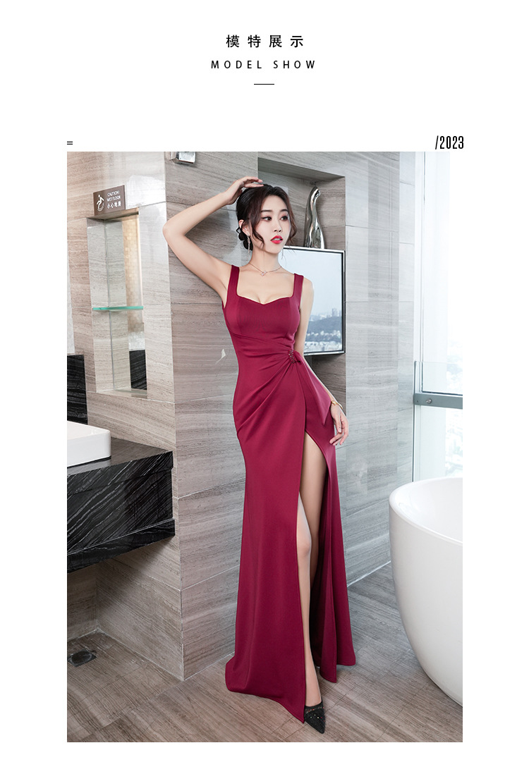 2025 Новый топ без рукавов с высоким разрезом, сексуальное вечернее платье, красный темперамент, рыбий хвост, набедренная одежда, тонкая одежда для ночного клуба