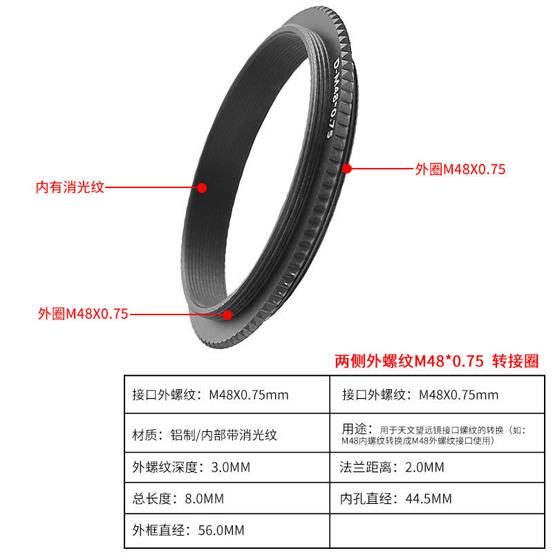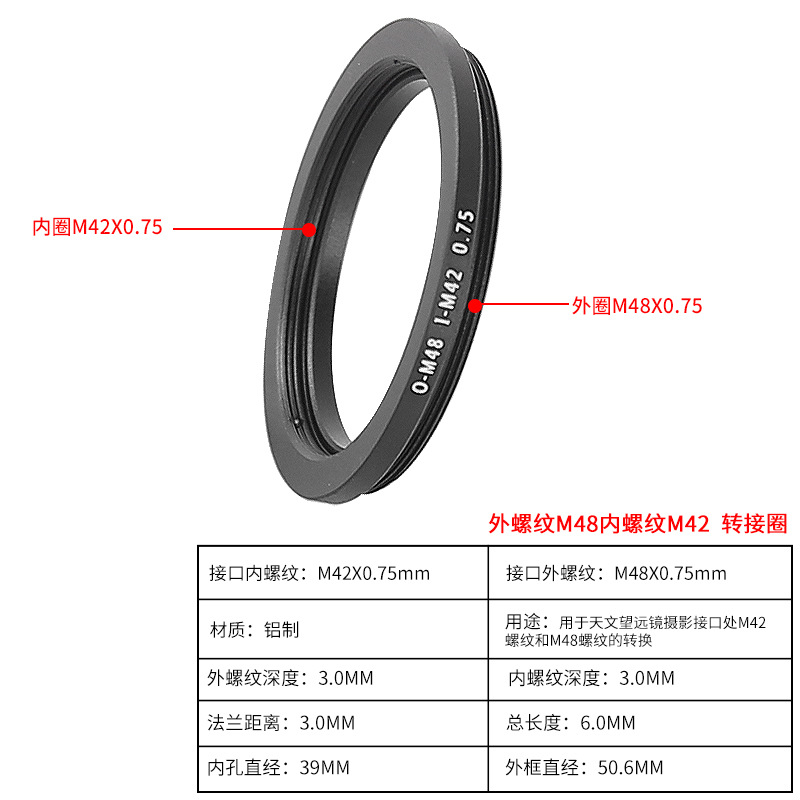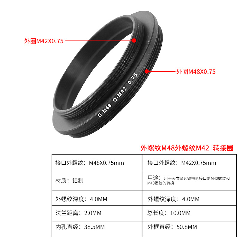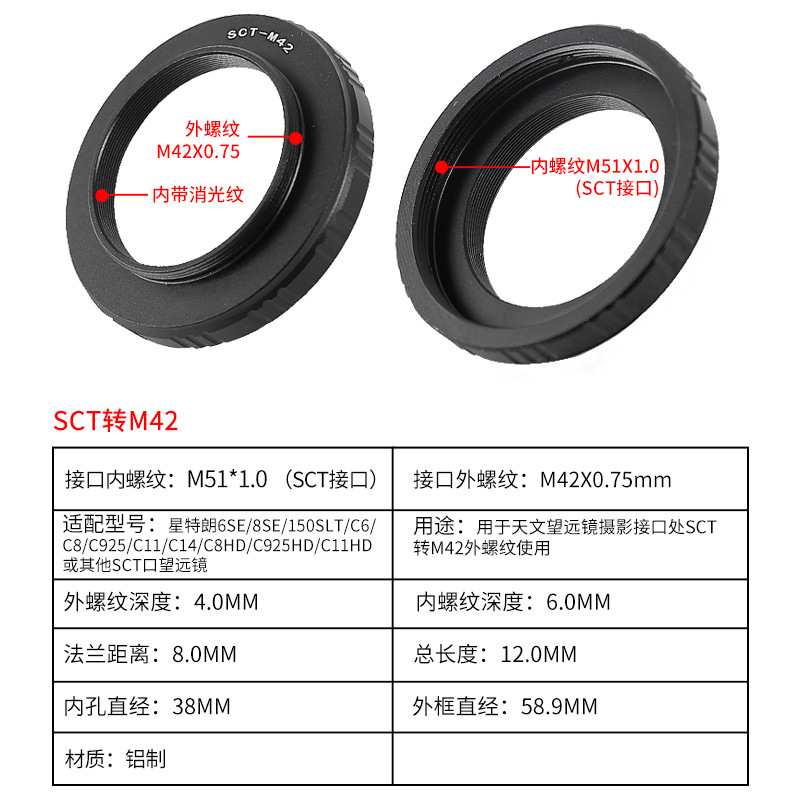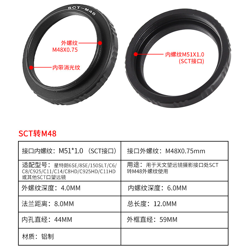 天文望远镜摄影SCT转M48/SCT转M42转换转接环外螺纹转接圈: