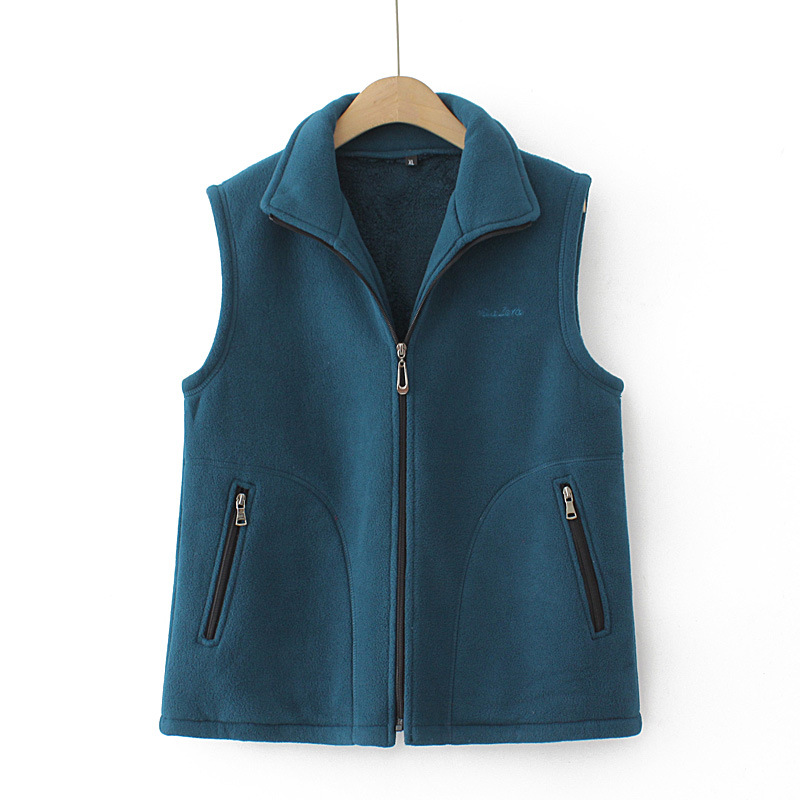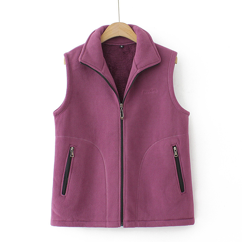 Плюс размер женский осенне-зимний Универсальный однотонный флисовый мягкий жилет на молнии для матери жилет пальто 188222