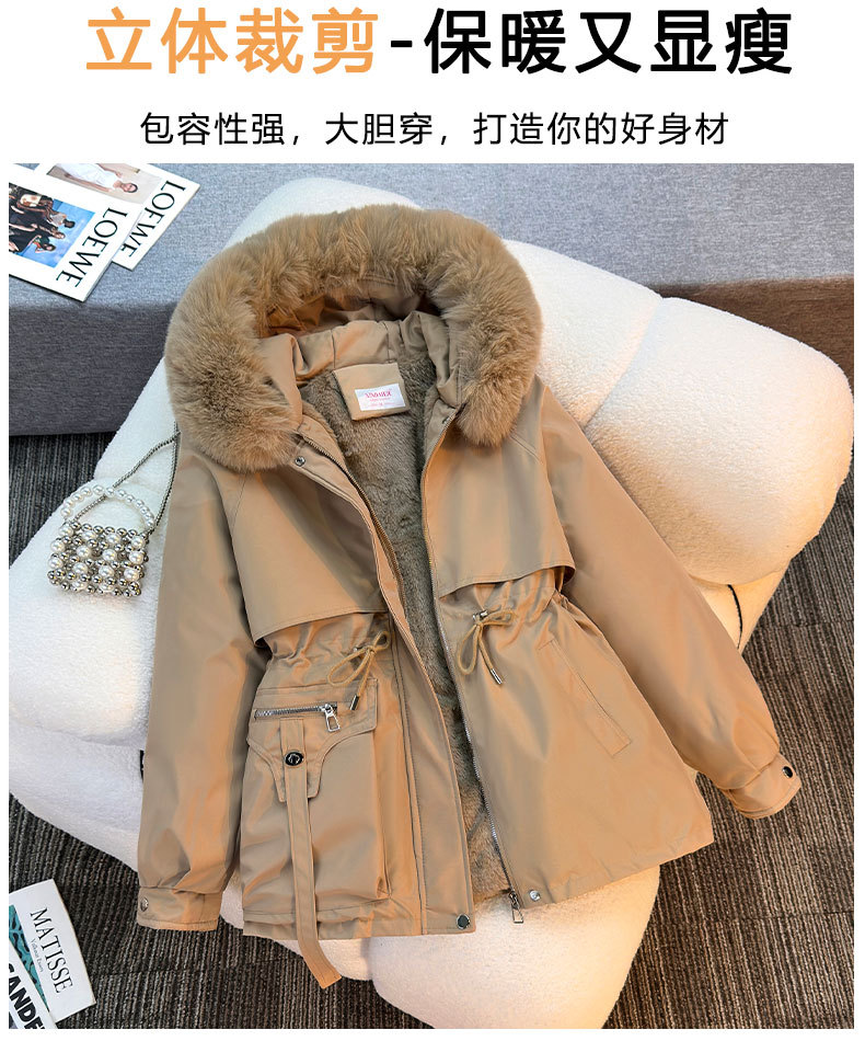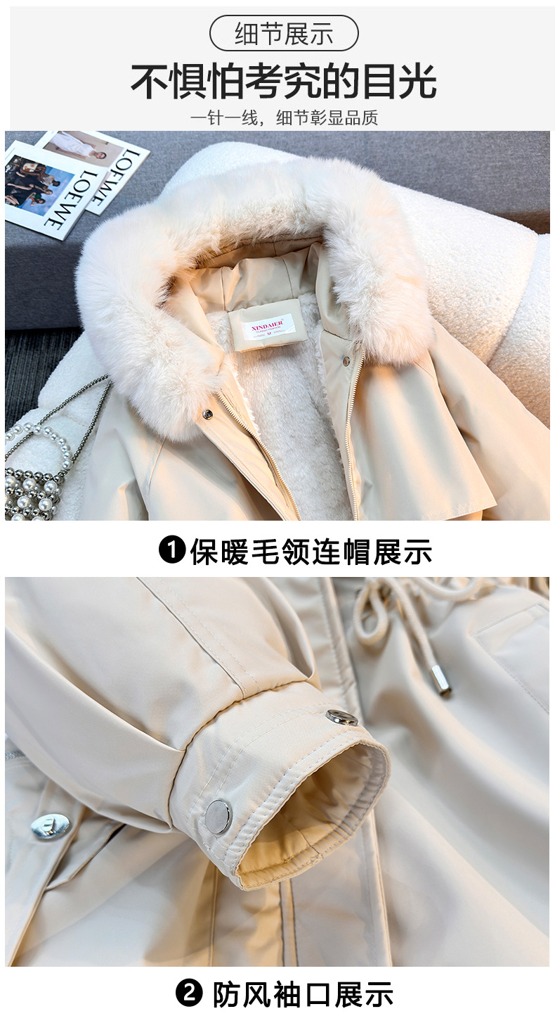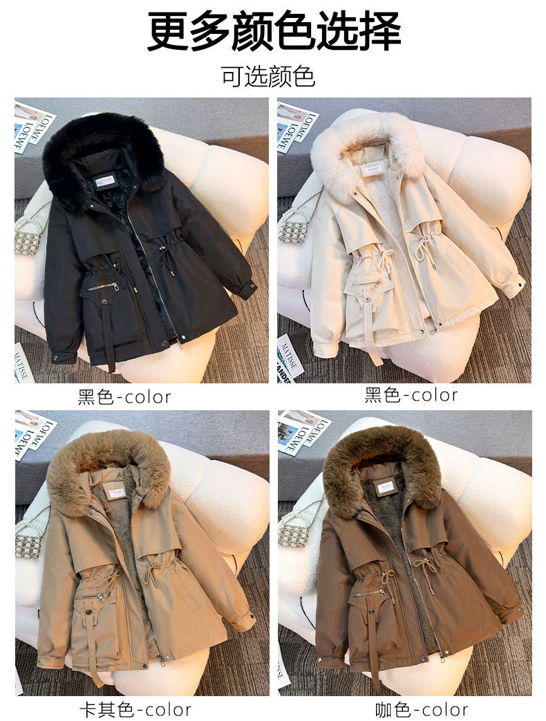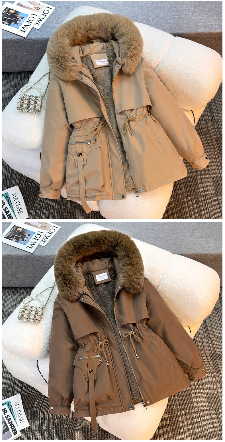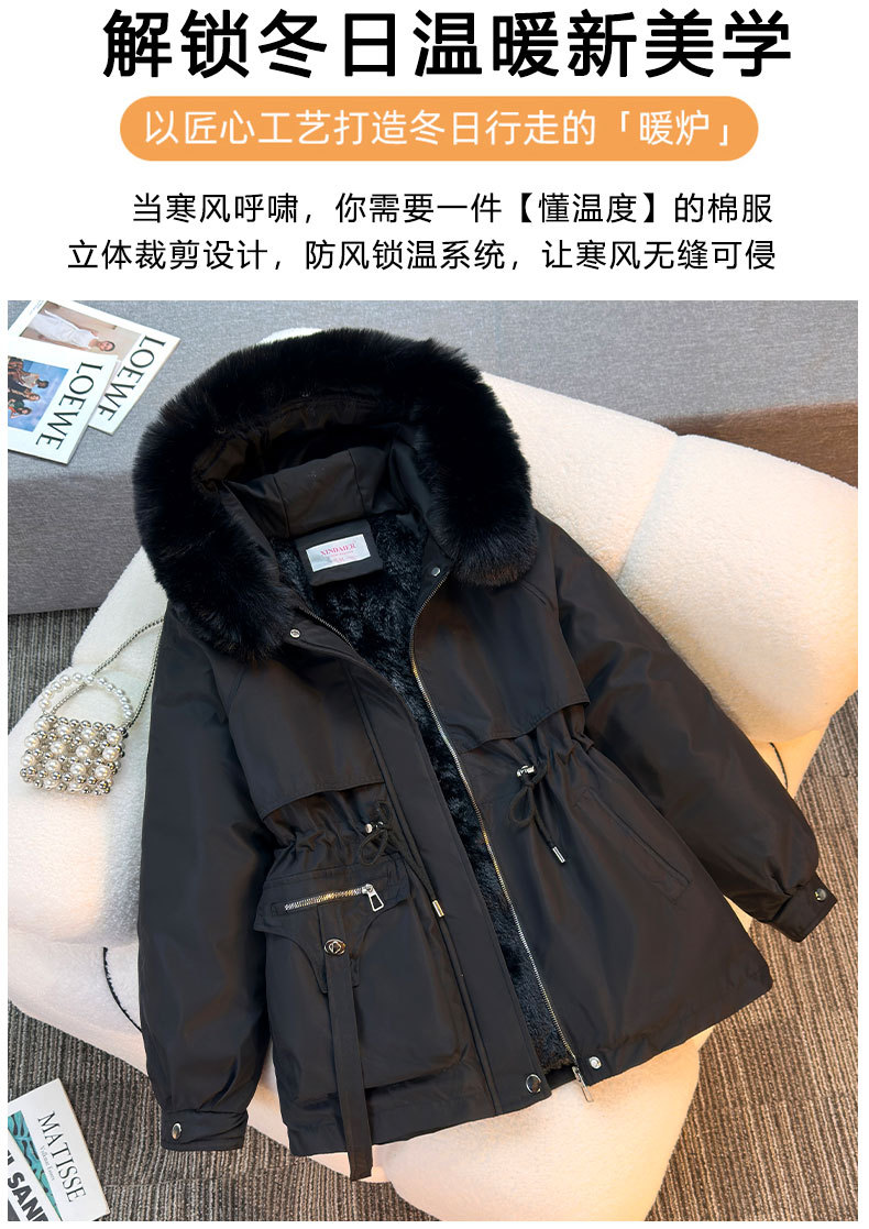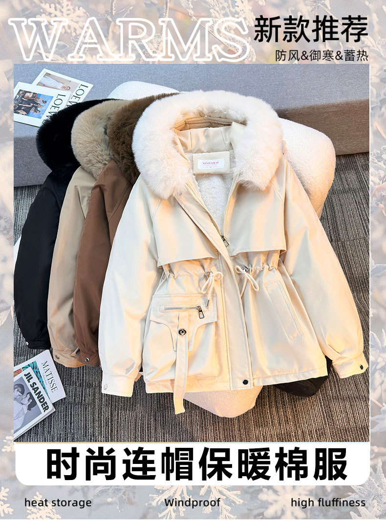Женская трансграничная парка 2025 года, с поясом, капюшоном, большим меховым воротником, на флисовой подкладке, хлопковая куртка, модное корейское осенне-зимнее пальто, теплая.