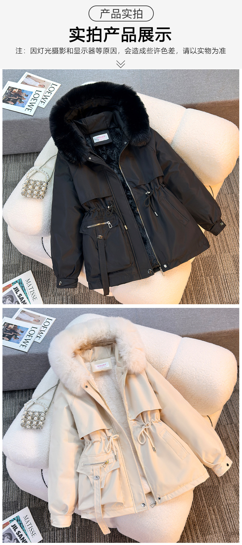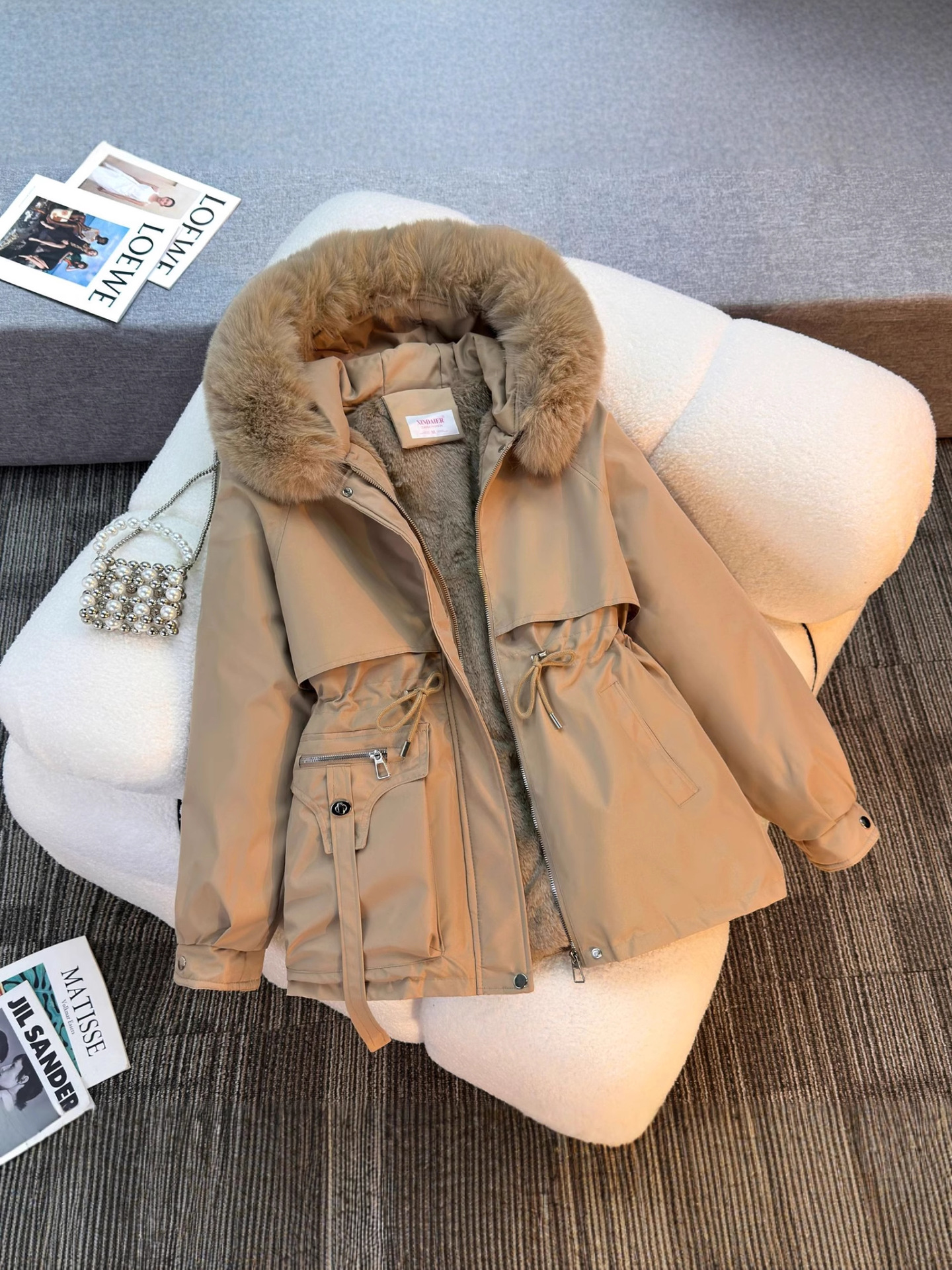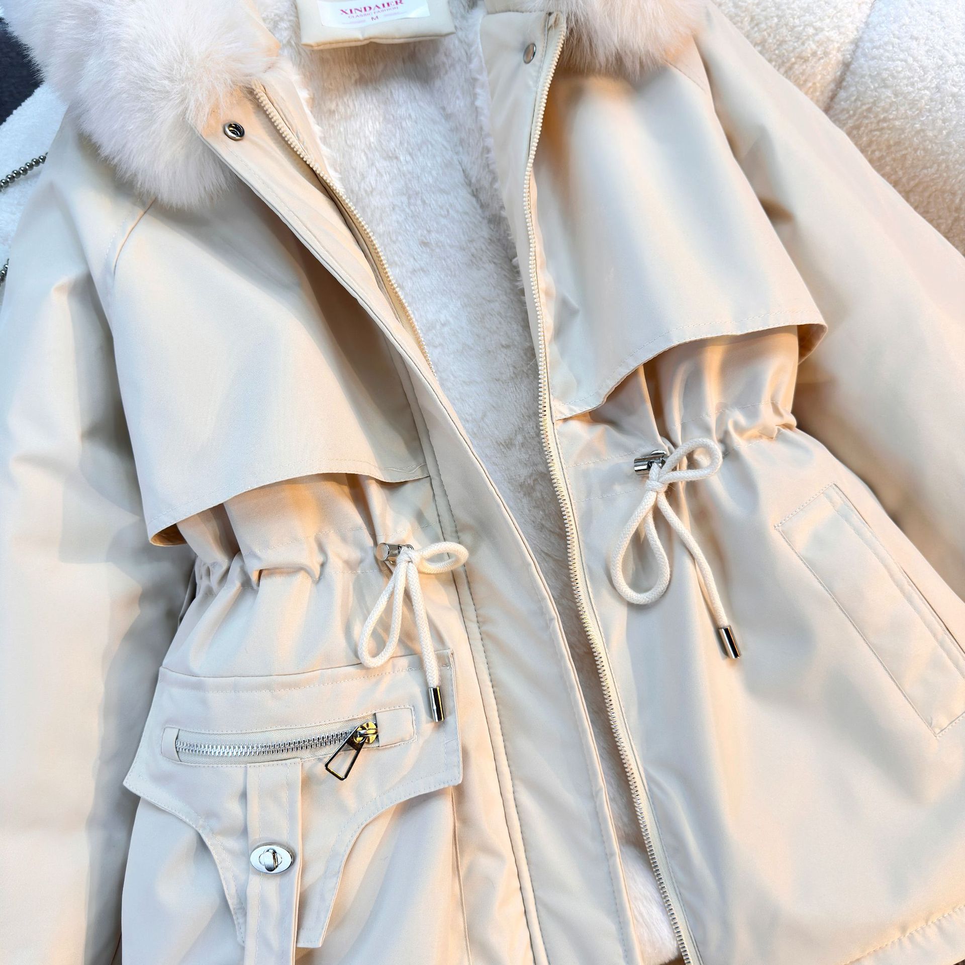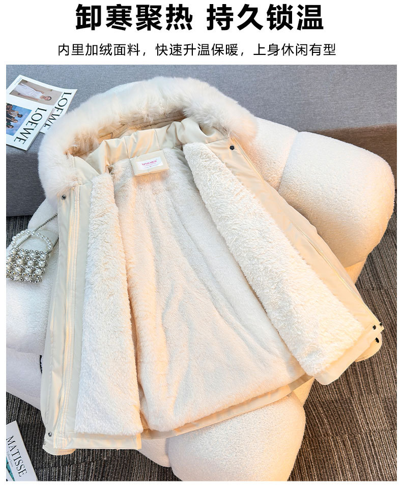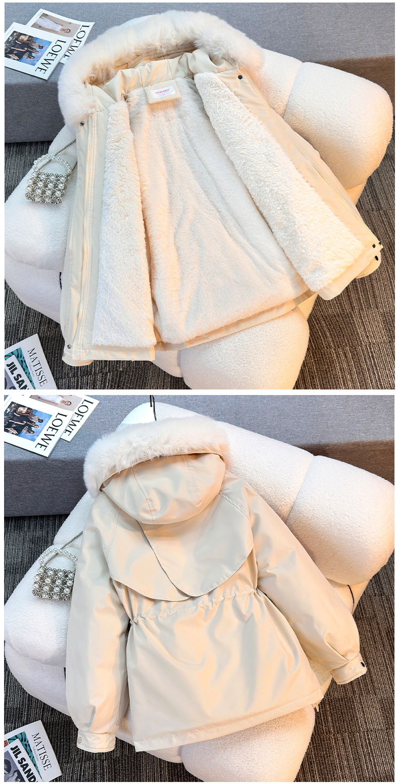 Женская трансграничная парка 2025 года, с поясом, капюшоном, большим меховым воротником, на флисовой подкладке, хлопковая куртка, модное корейское осенне-зимнее пальто, теплая.