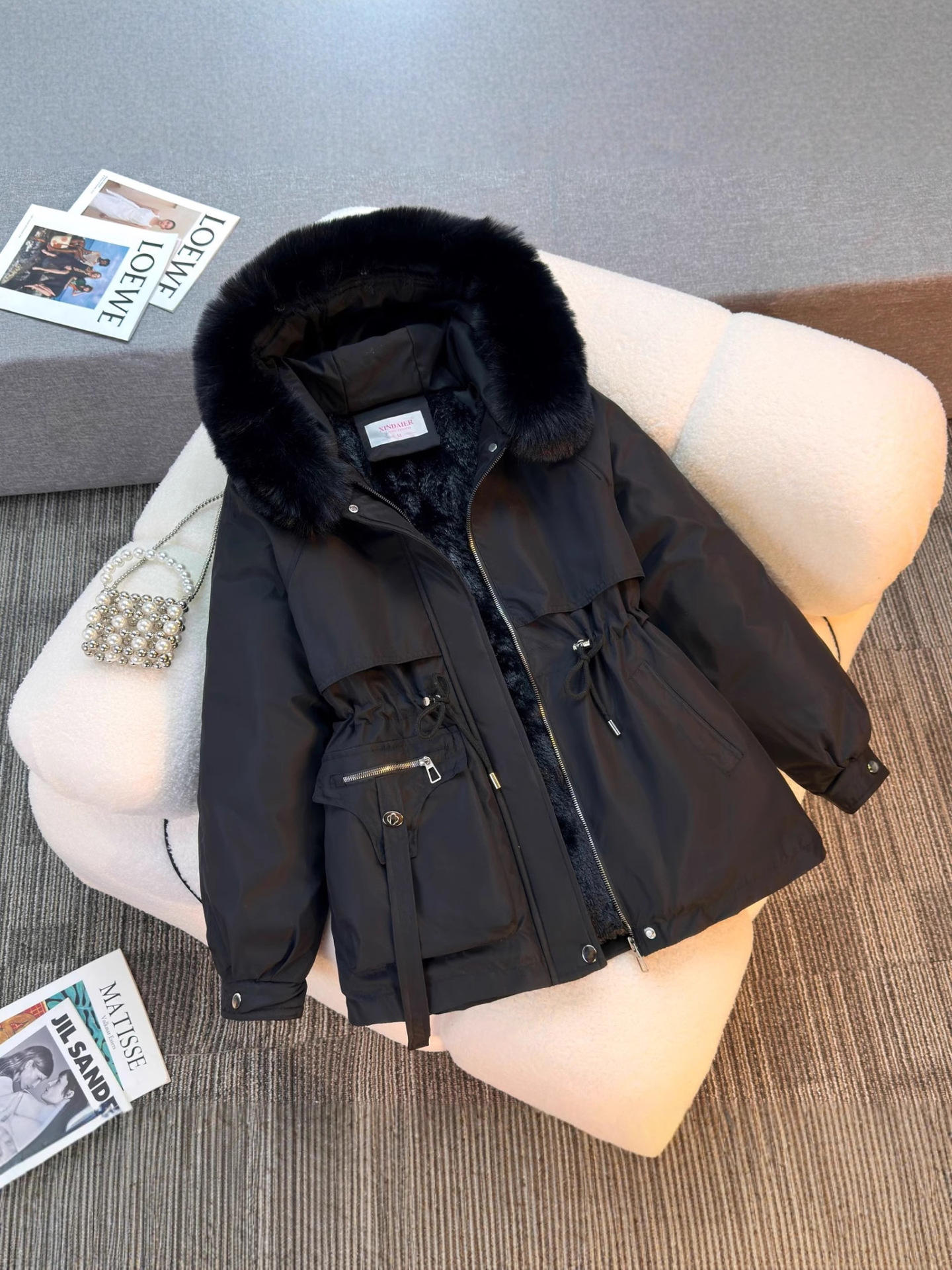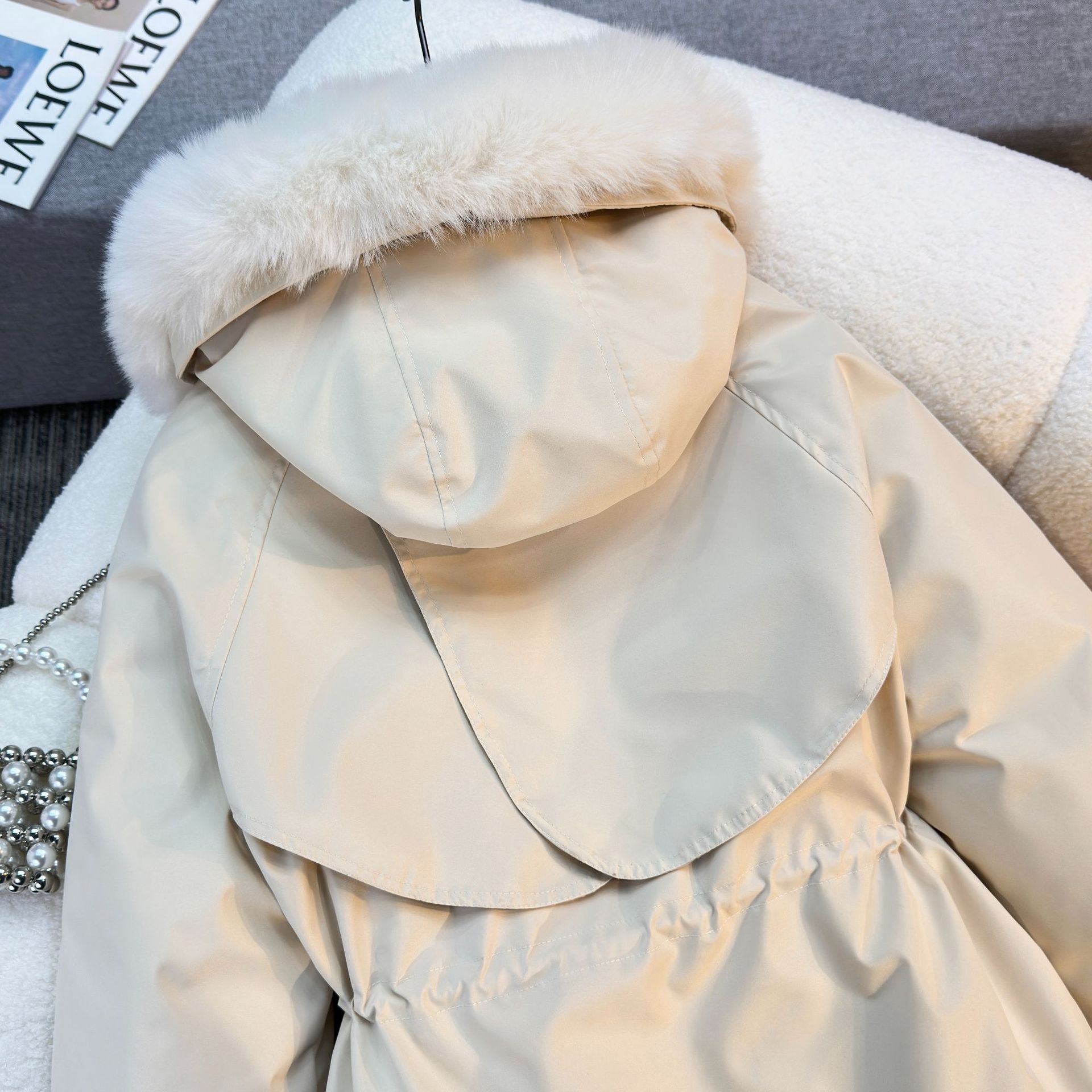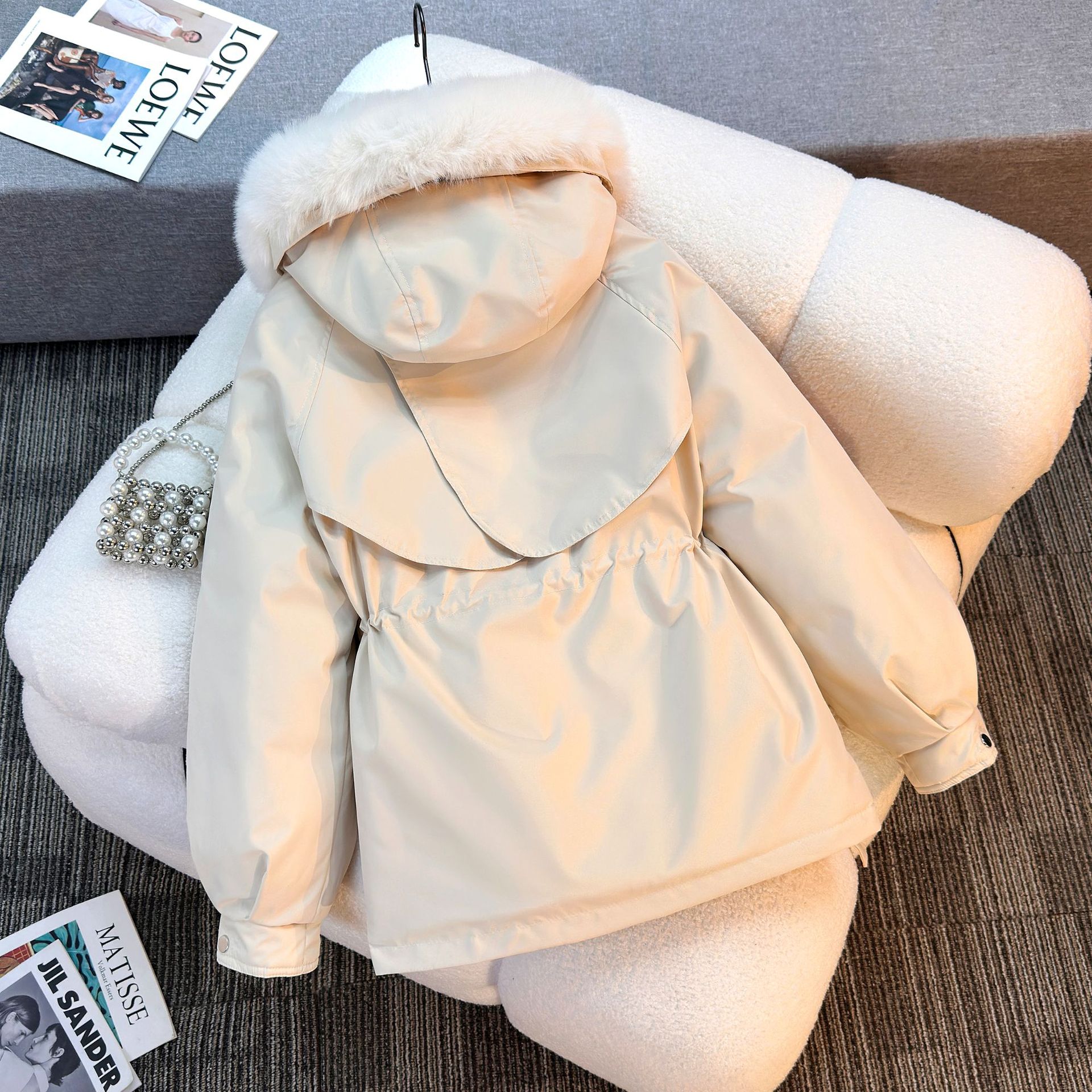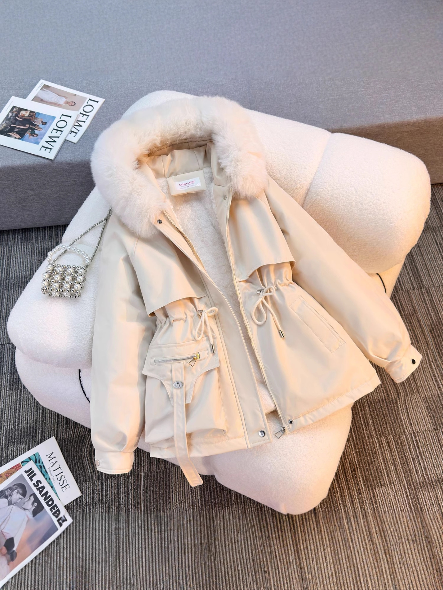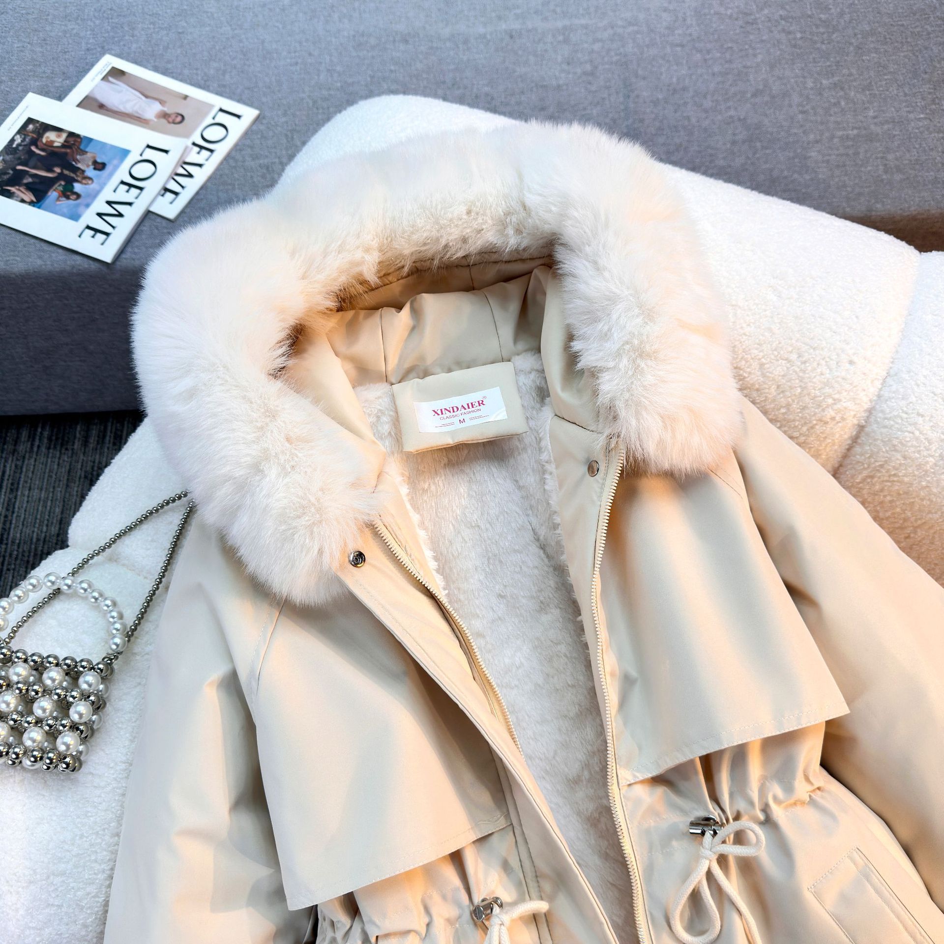 Женская трансграничная парка 2025 года, с поясом, капюшоном, большим меховым воротником, на флисовой подкладке, хлопковая куртка, модное корейское осенне-зимнее пальто, теплая.