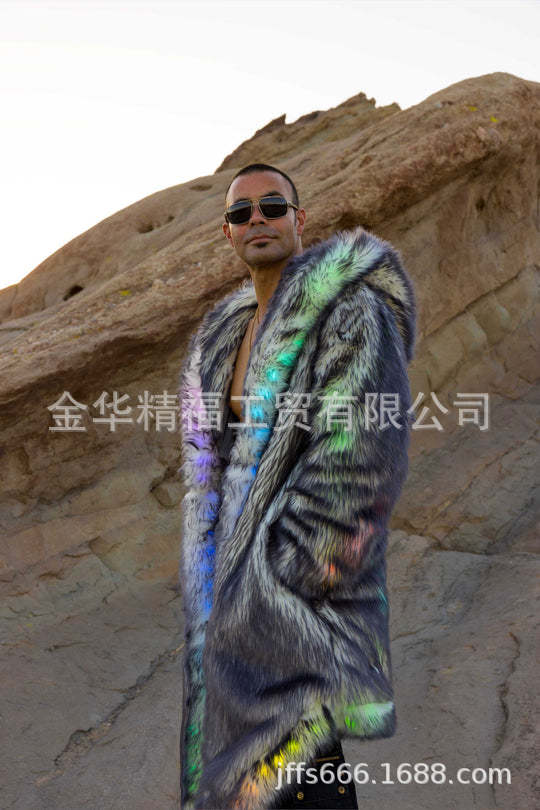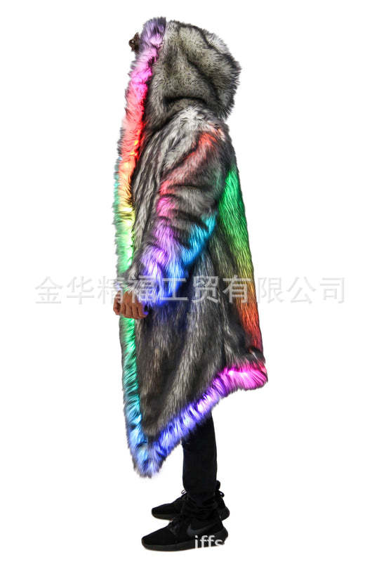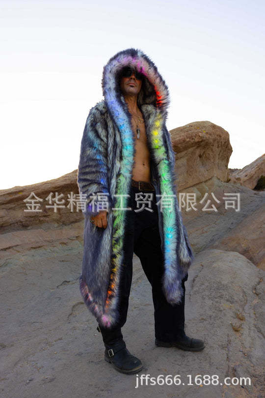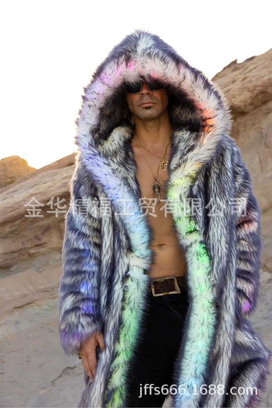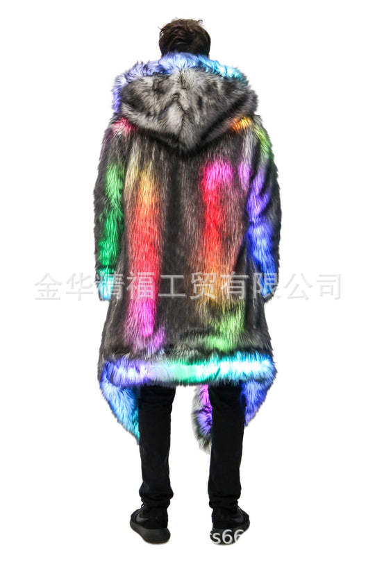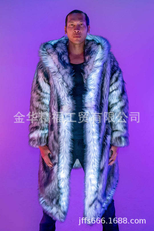 Карнавальный костюм для вечеринки, мужской европейский и американский косплей с капюшоном, СВЕТОДИОДНЫЙ Электрический слоговый костюм, куртка из искусственного меха
