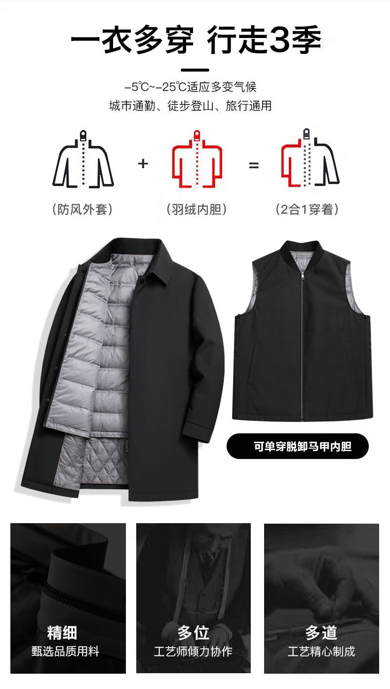 Три износа новый национальный стандарт утка кашемир длинный пуховик обезвредить внутреннее пальто отец