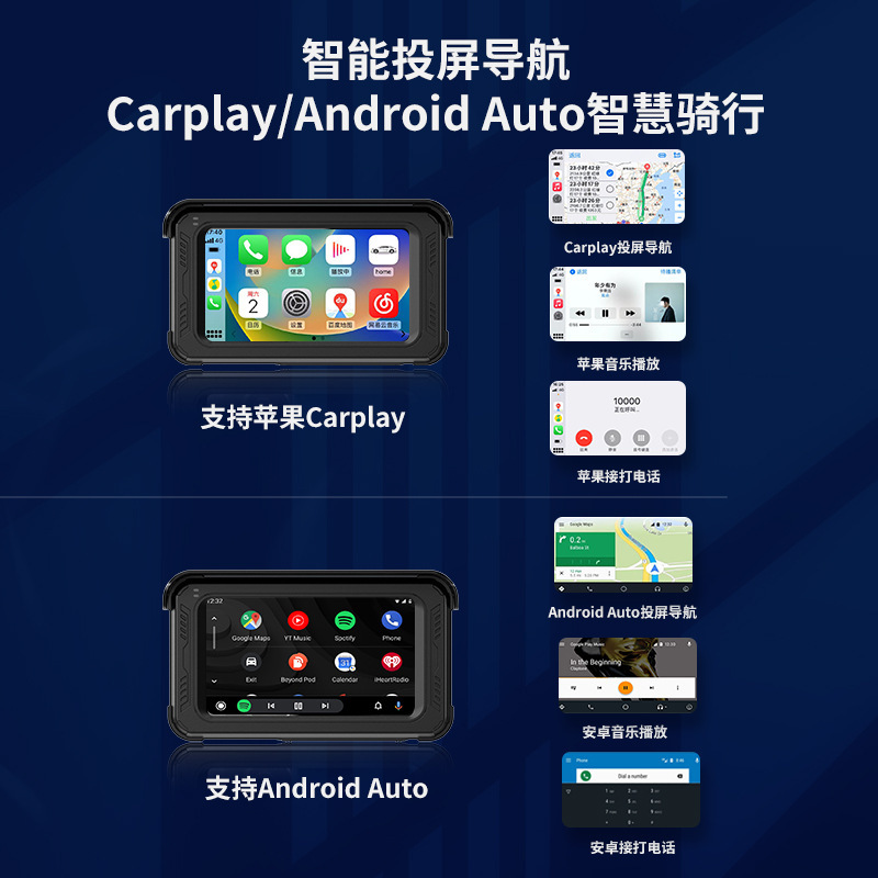 Мотоцикл Локомотив Беспроводной CarPlay Android Apple 5-дюймовый портативный GPS-навигатор мотоциклетный рекордер