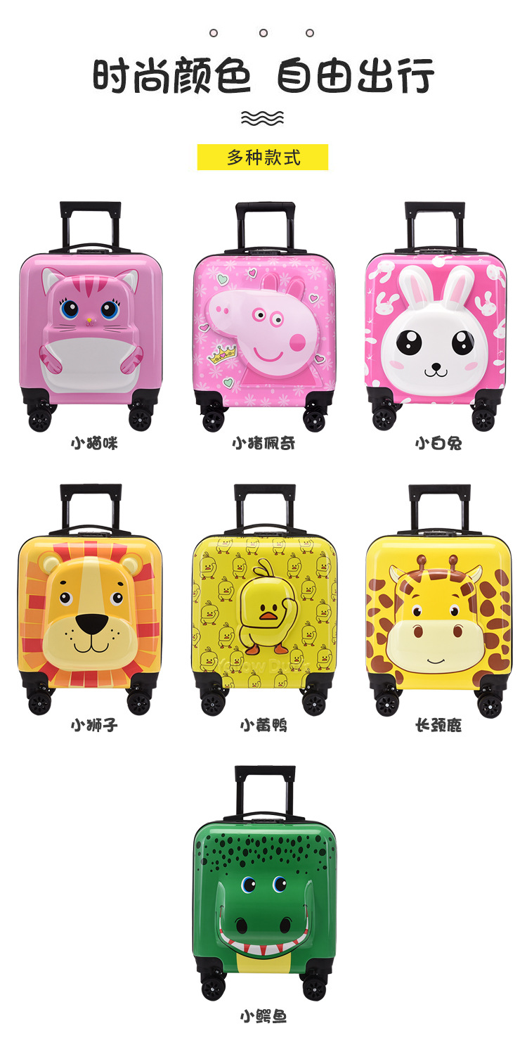 Детский чемодан на колесиках, новый 3D трехмерный милый мультяшный животный студенческий багаж, 18 дюймов, универсальный чемодан на колесах