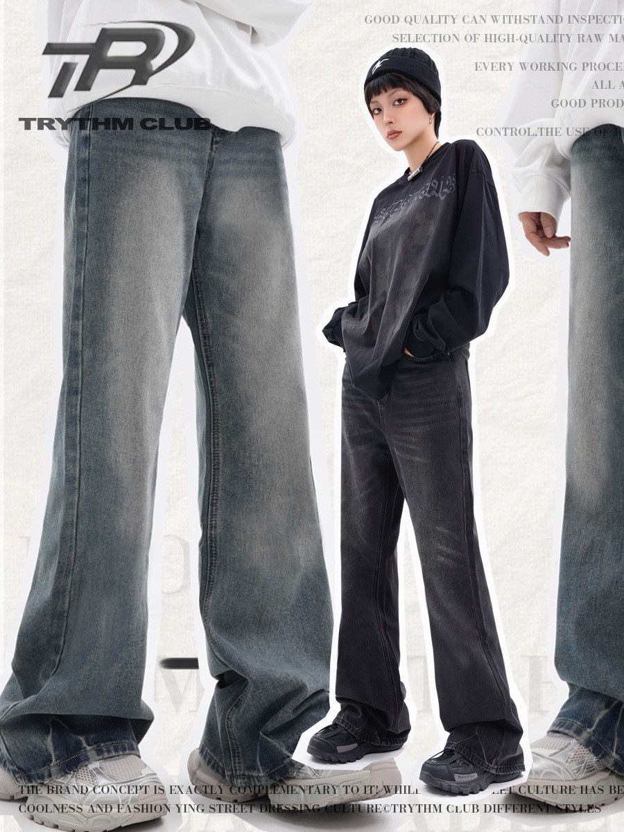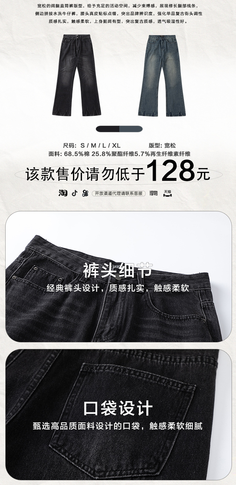 WHOOWAP модные брендовые повседневные брюки унисекс в американском стиле в стиле ретро свободные Выбеленные широкие джинсы на молнии