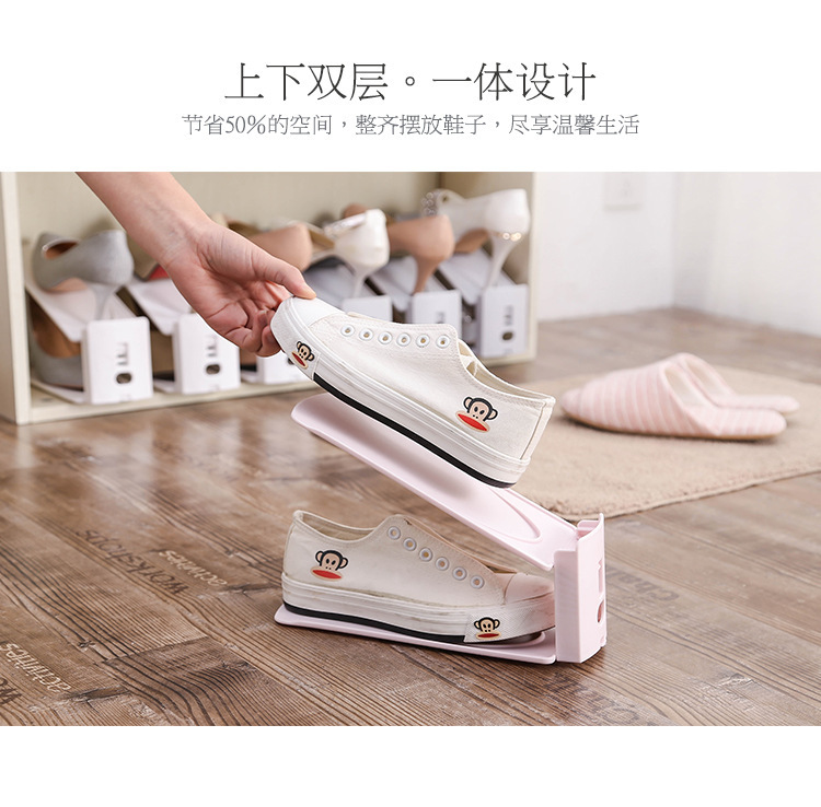 Стеллаж для хранения обуви, двухслойный, креативный, простой, однотонный, регулируемый, простой кронштейн для обуви, пылезащитный стеллаж для хранения обуви для домашнего использования