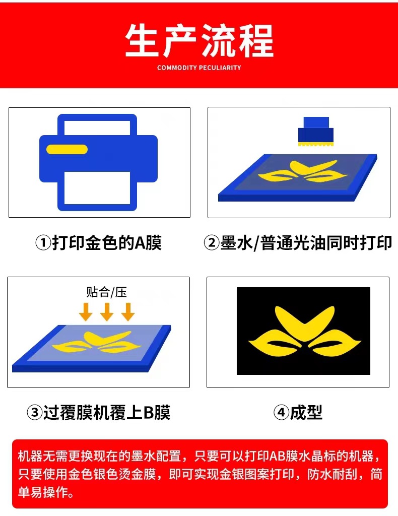 Ультрафиолетовый кристалл логотип специальная печатная пленка AB, рулонный материал, горячее золото, горячее серебро, высокая липкость, переносная пленка, разрывная пленка, оставлена 30/60 см