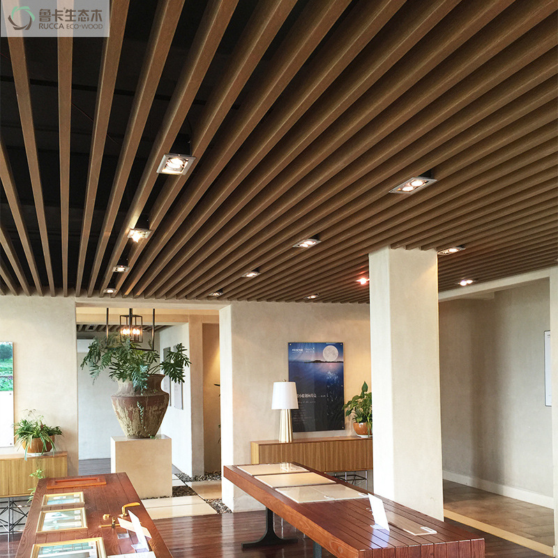 Производитель 40*25 экологическое дерево, пластик, материал для украшения потолка, деревянная потолочная доска из ПВХ, пластиковая деревянная квадратная проходная трансграничная