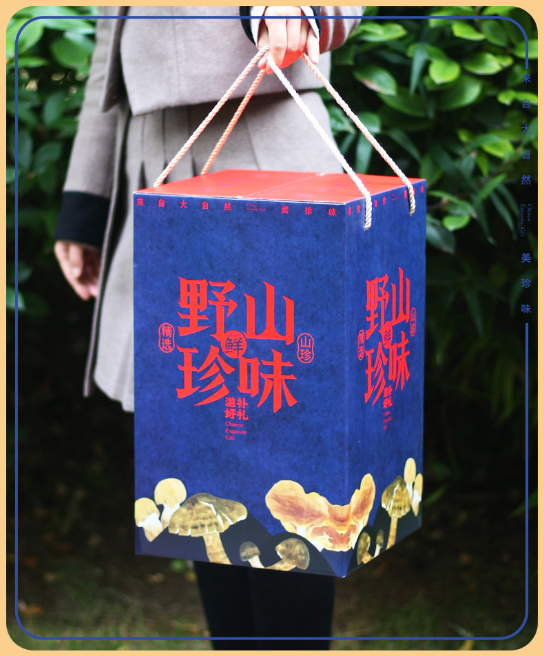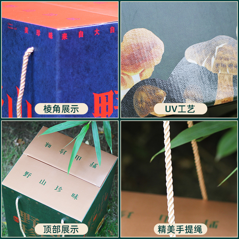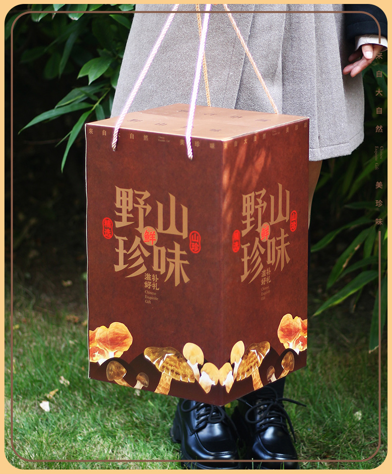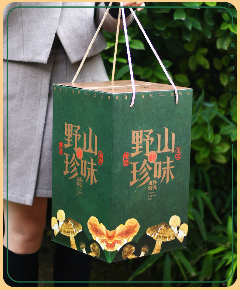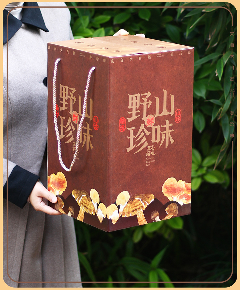 [Квадратная Плоская верхняя коробка] Дикая Гора Сокровище Галантерея Грибная суповая сумка Подарочная коробка Пустая коробка Праздничный подарок Сухой дикий Овощной чемодан