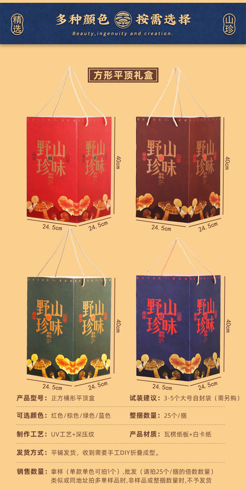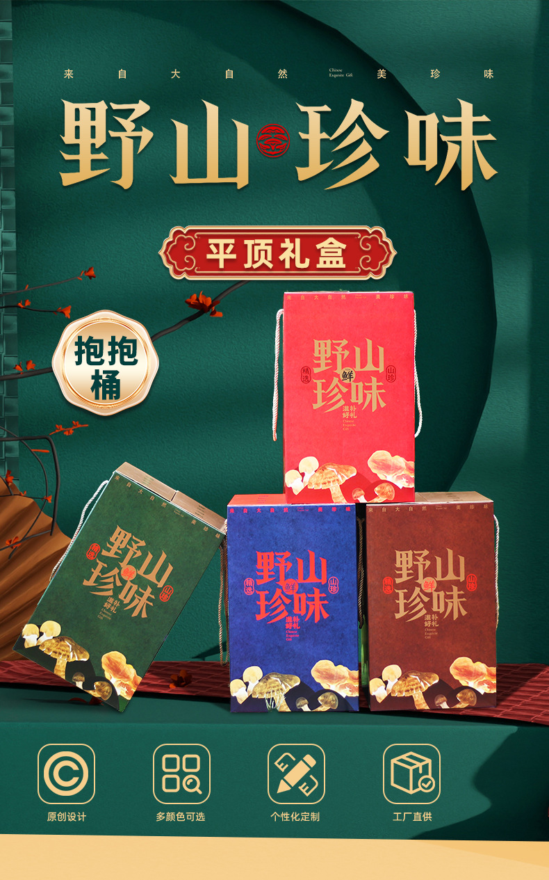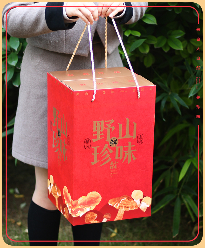 [Квадратная Плоская верхняя коробка] Дикая Гора Сокровище Галантерея Грибная суповая сумка Подарочная коробка Пустая коробка Праздничный подарок Сухой дикий Овощной чемодан