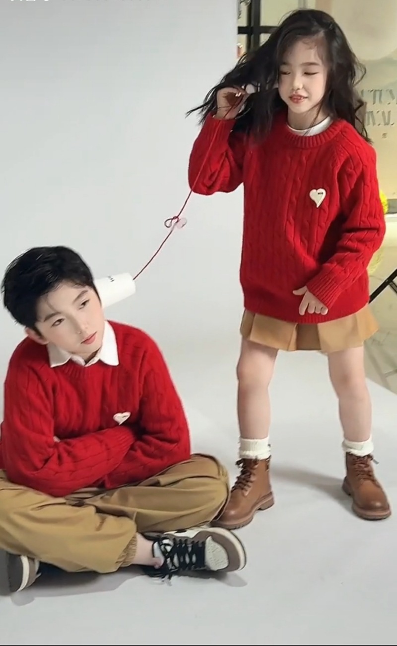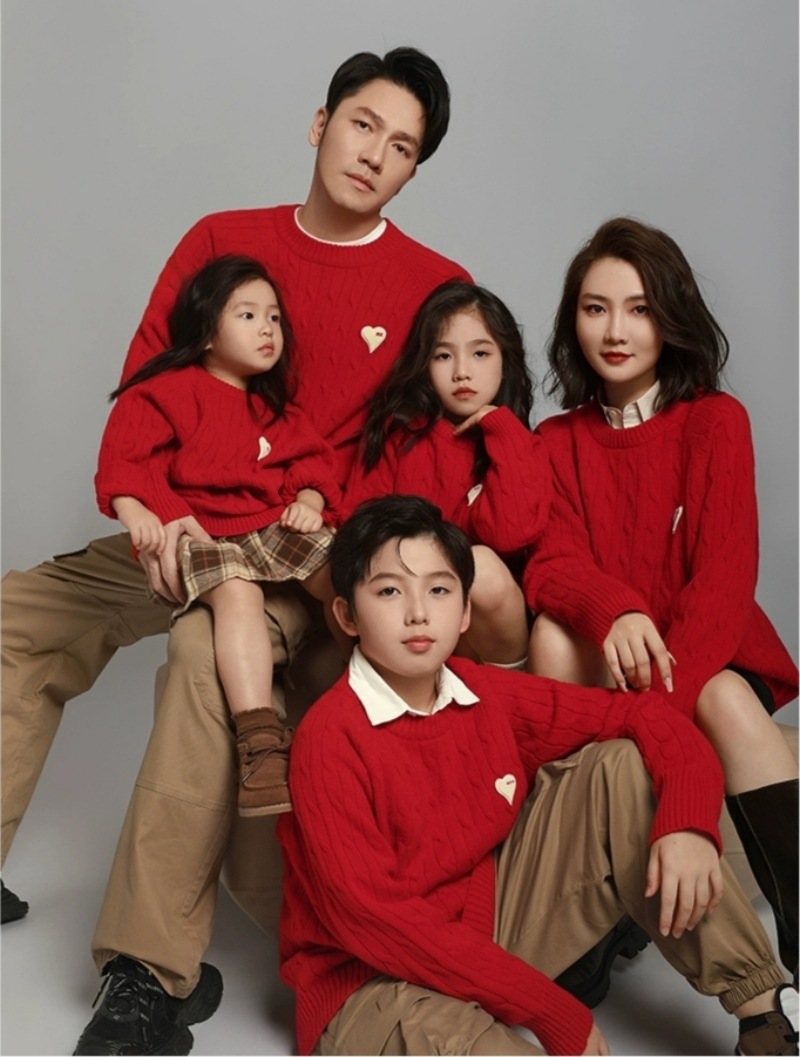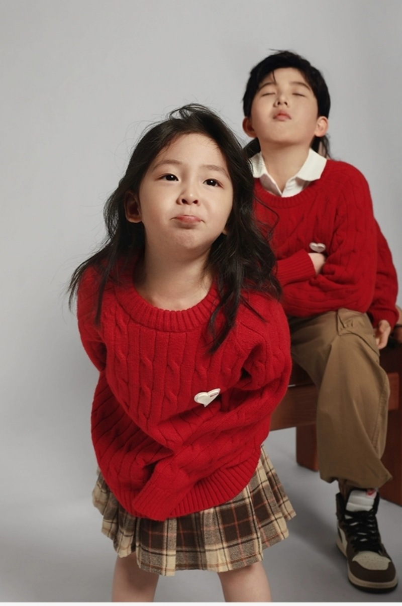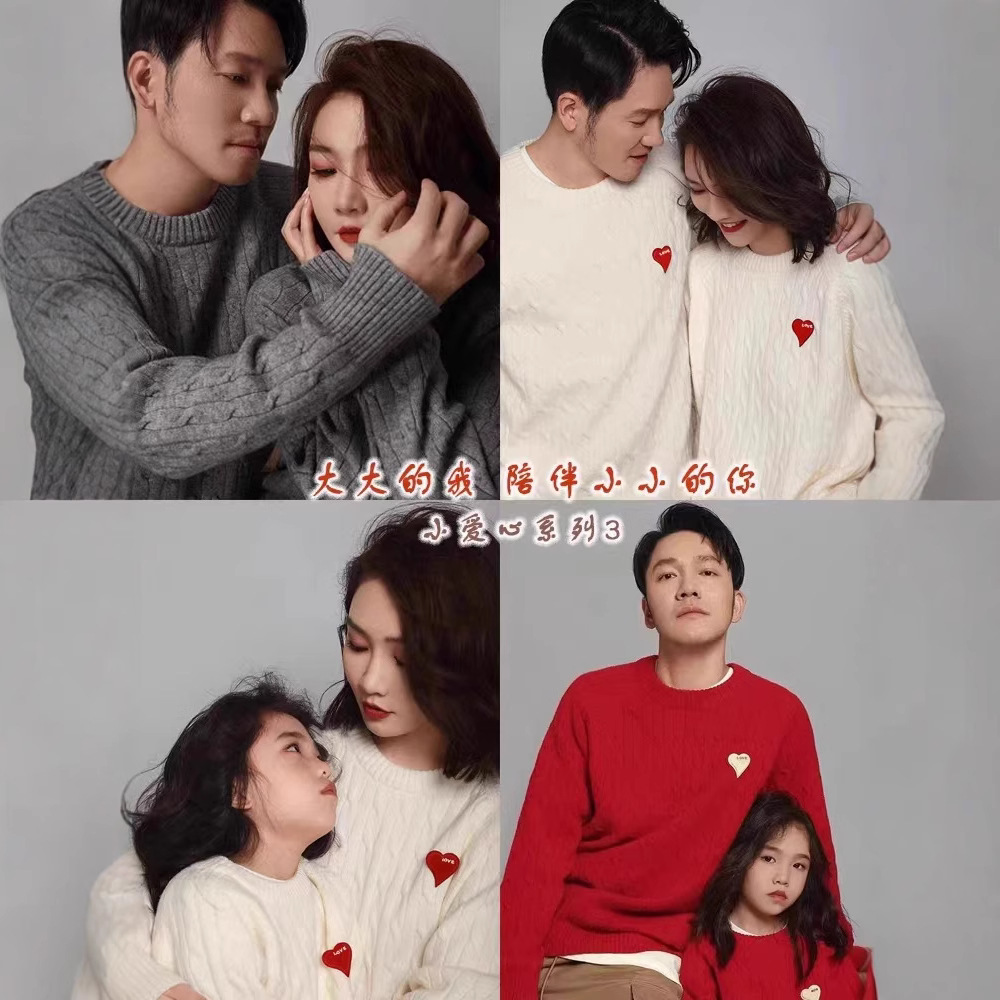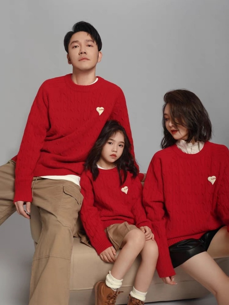 Семейные свитера для троих членов семьи, новинка осени-зимы 2025 года, утолщенные красные вязаные свитера крупной вязки для мамы и сына, для мамы и дочки, одежда для малышей для ползания.