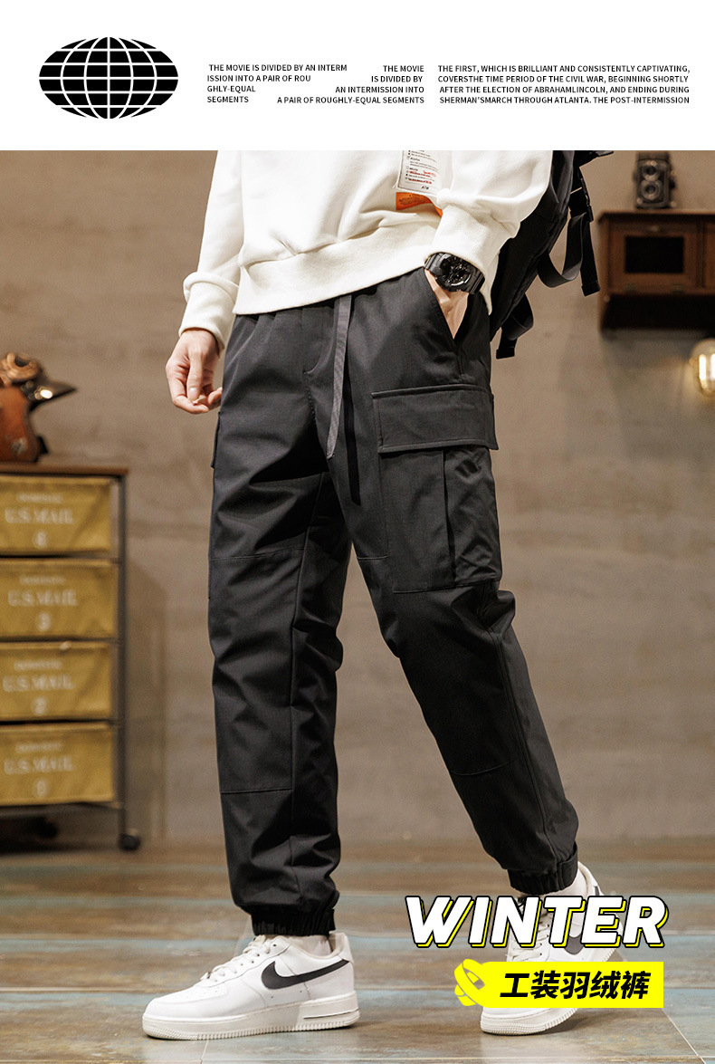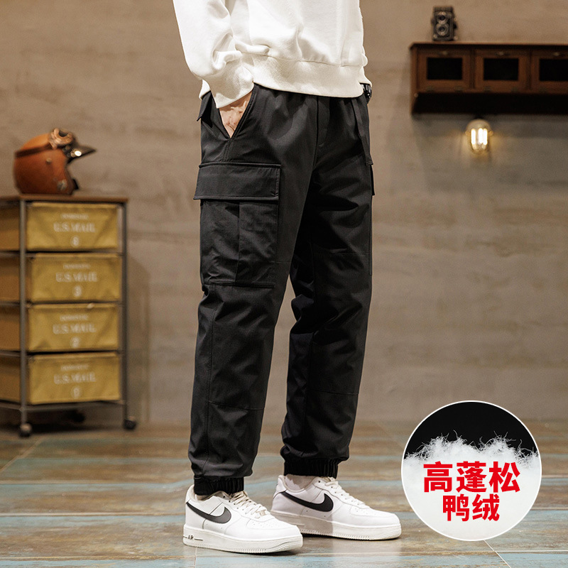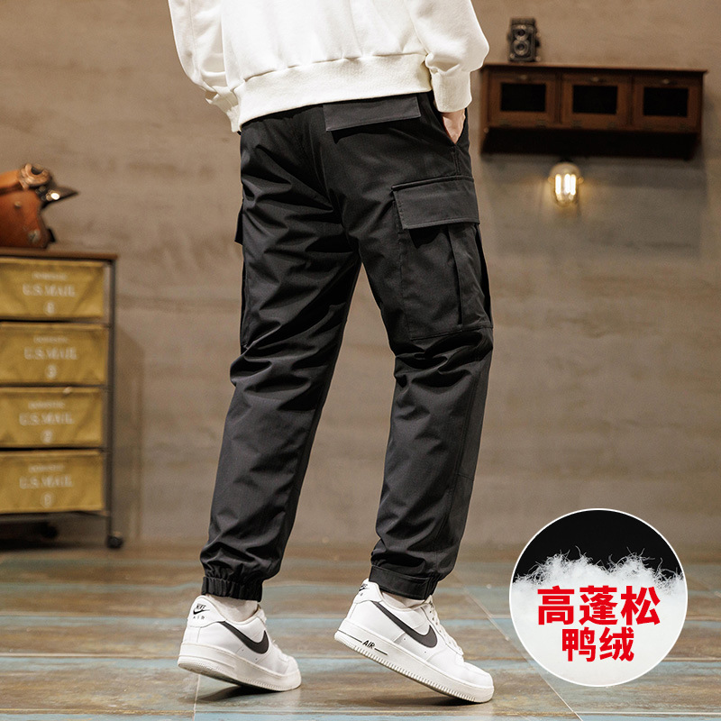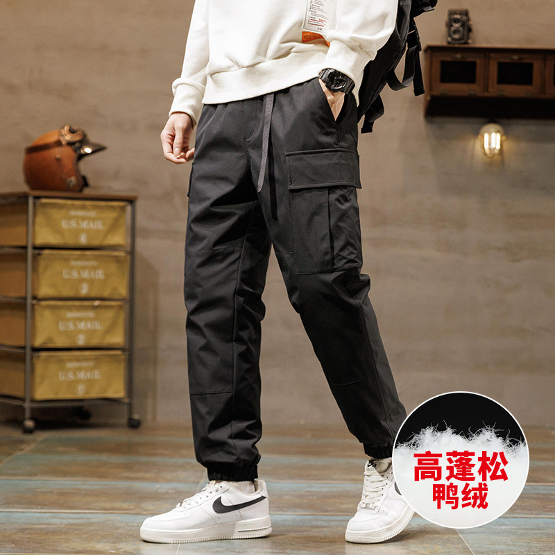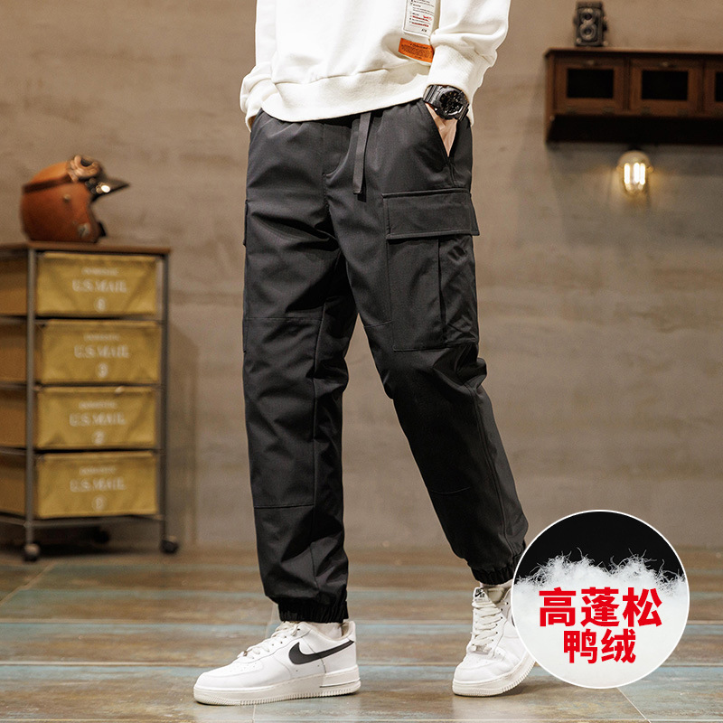 Зимние модные брендовые популярные мужские пуховые брюки, рабочая одежда с множеством карманов, трансформируемые, новые повседневные брюки из 90% утиного пуха, соответствующие национальному стандарту.