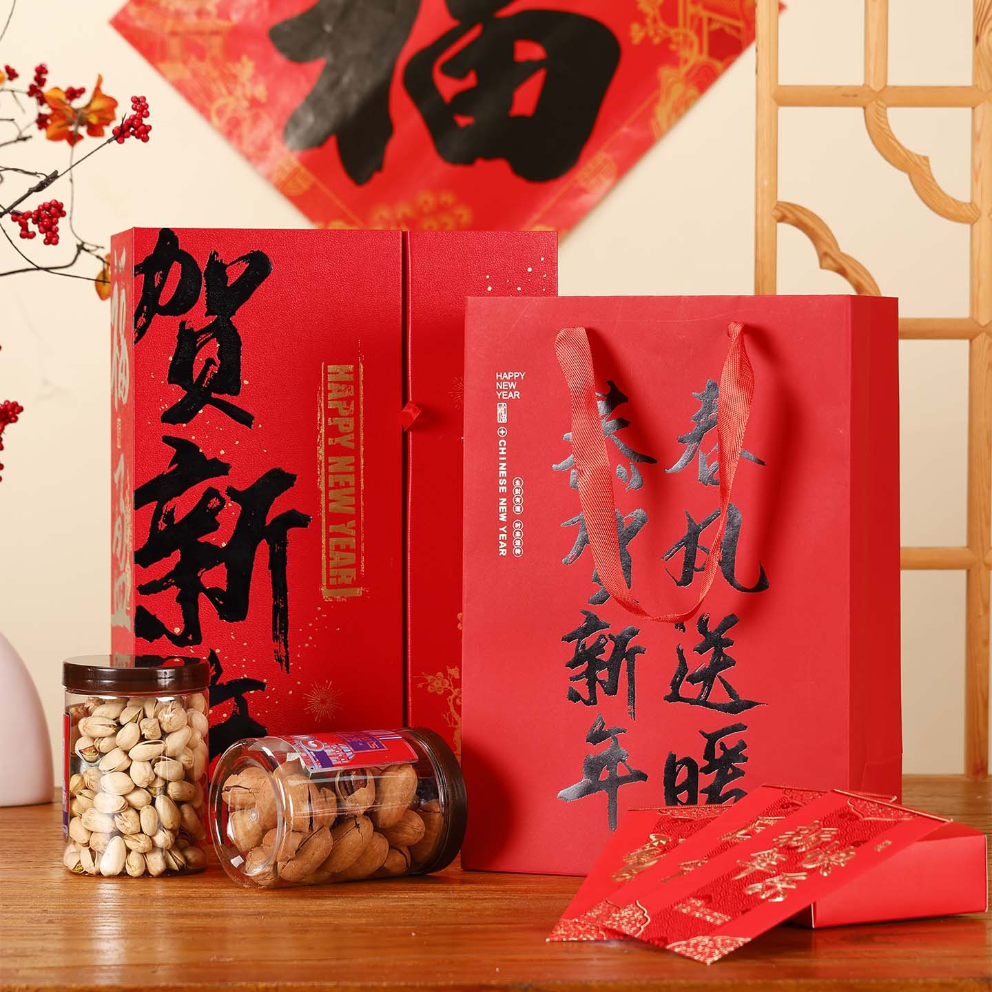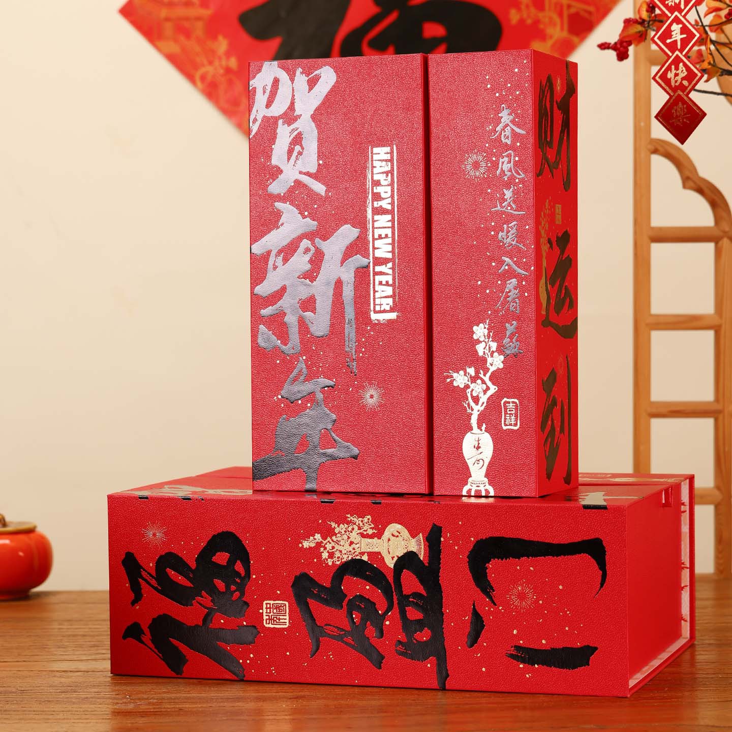 Новый год Подарочная коробка Китайский Красный Фолио Упаковывая Коробка Творческий Новый Год Товаров Сухофрукты Подарочная Коробка купе красное вино упаковка коробка