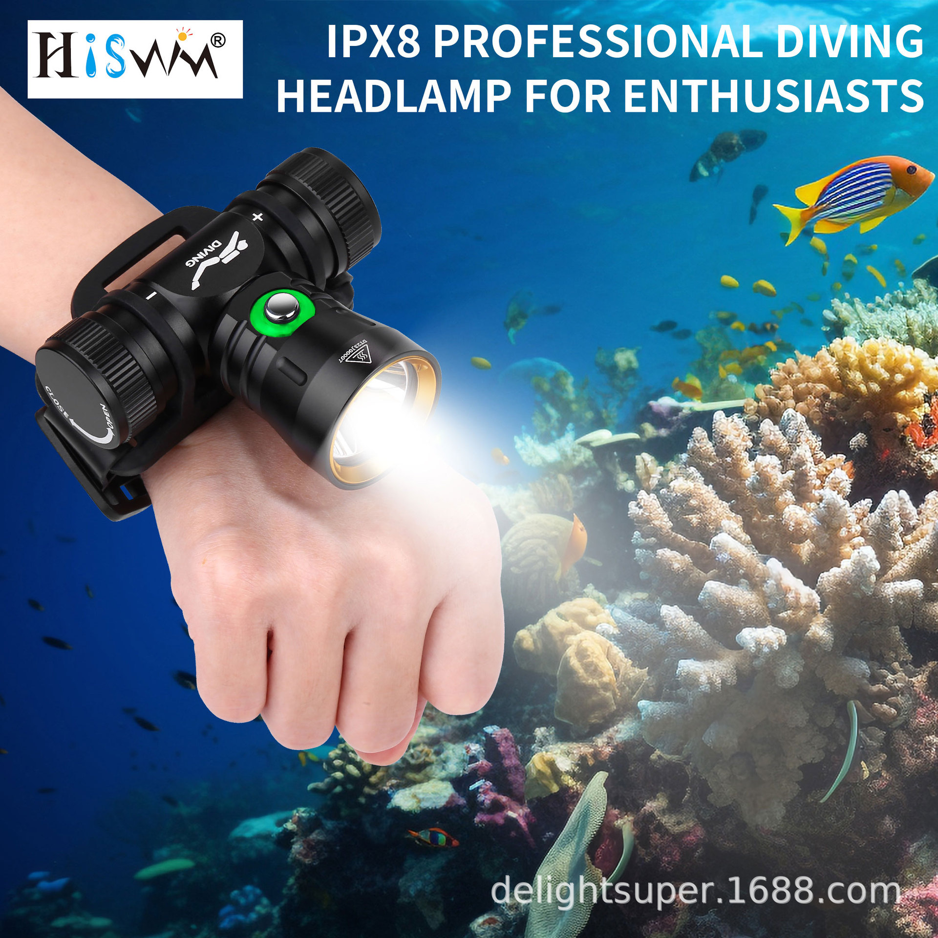 Новинка 2024 года, фара для дайвинга DH100, переключатель мощности IPX8, светодиодная фара для дайвинга, дайвинг для отдыха