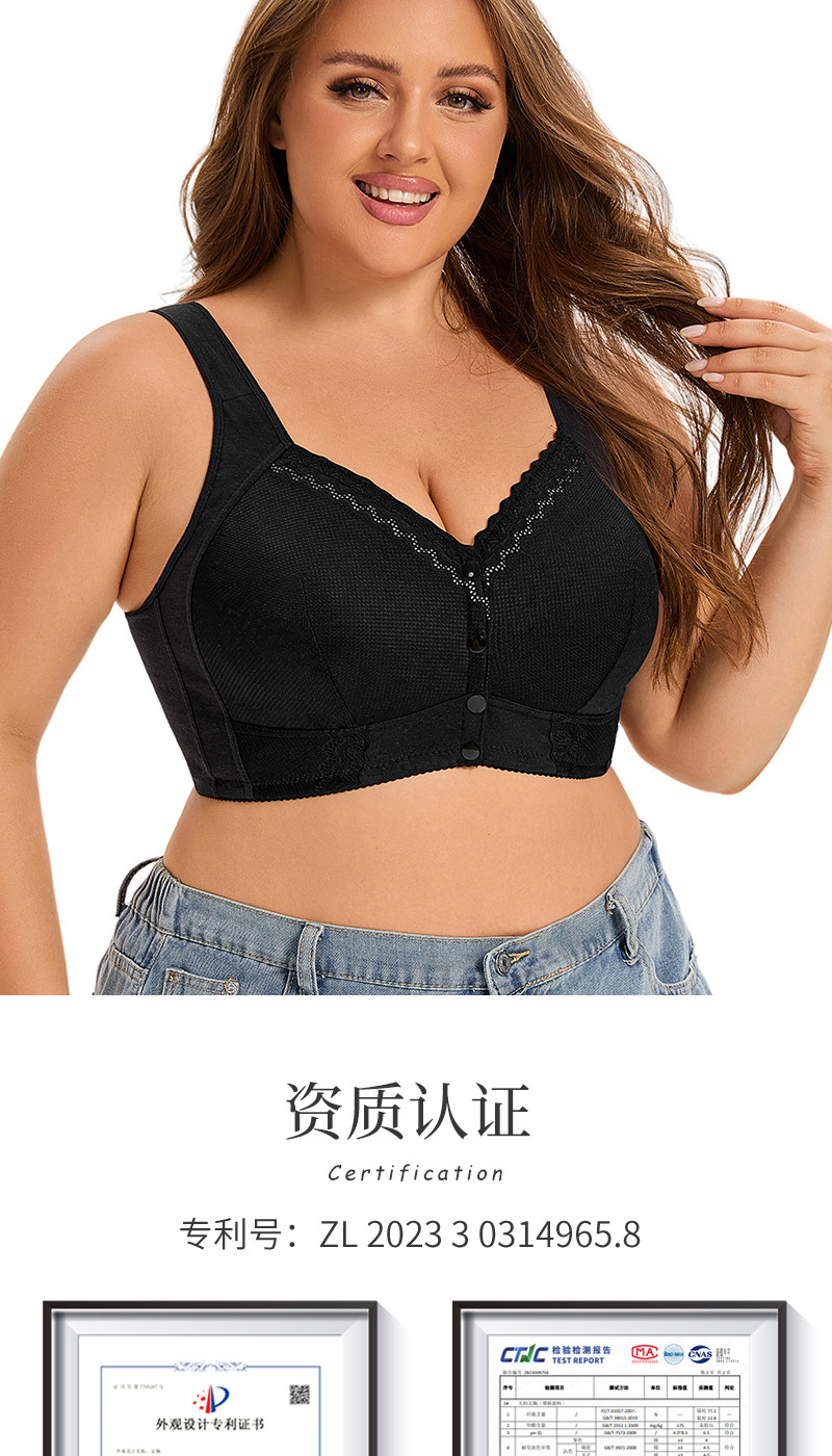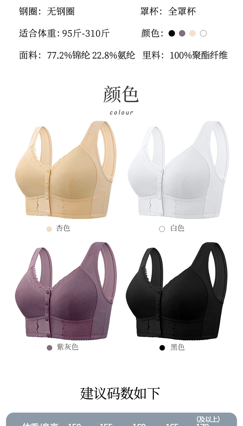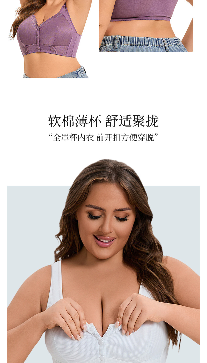 Новая мягкая хлопковая тонкая чашка передняя пряжка для среднего и пожилого нижнего белья для женщин кружева без стального кольца задний бюстгальтер ультра-большого размера