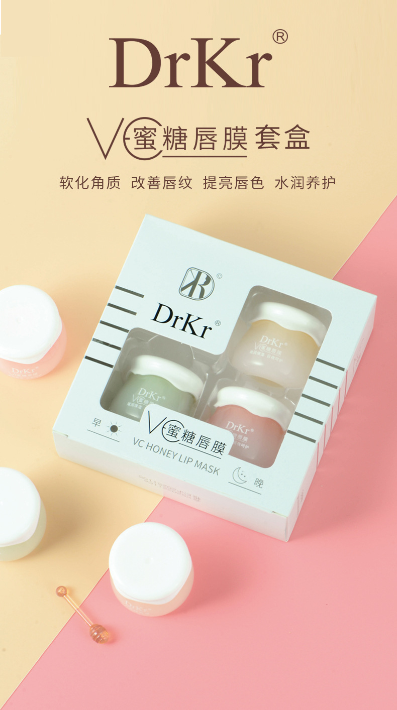 Набор масок для губ DrkrVC Honey Lip Mask — это увлажняющая и питательная маска для губ, которая не ощущается жирной, обеспечивает длительное действие, предотвращает сухость и растрескивание, и обеспечивает равномерный цвет губ.