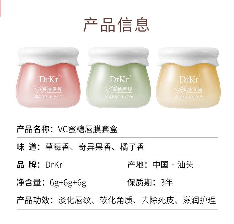 DrkrVC Медовый чехол для губ 6 г * 3 банки