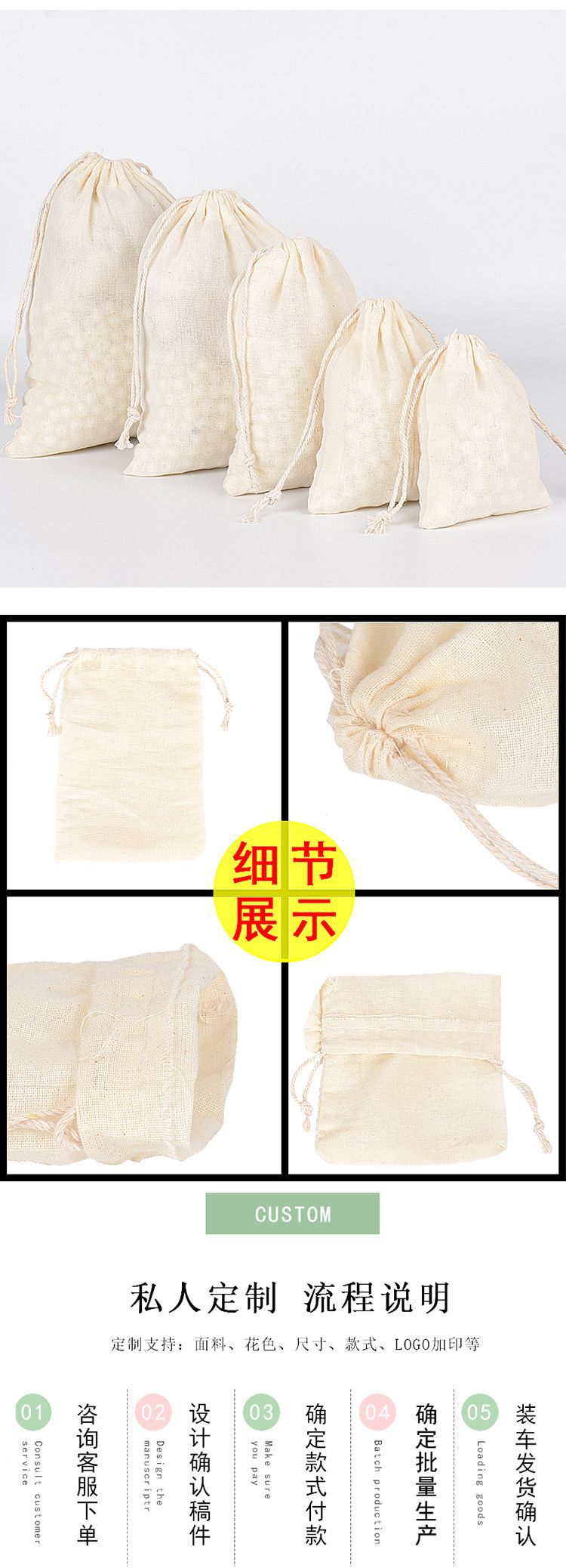 Хлопковая сумка на шнурке Специи Чайный пакетик Печатный логотип Ювелирные изделия Подарочная упаковка Пылезащитный тонкий хлопковый пакет