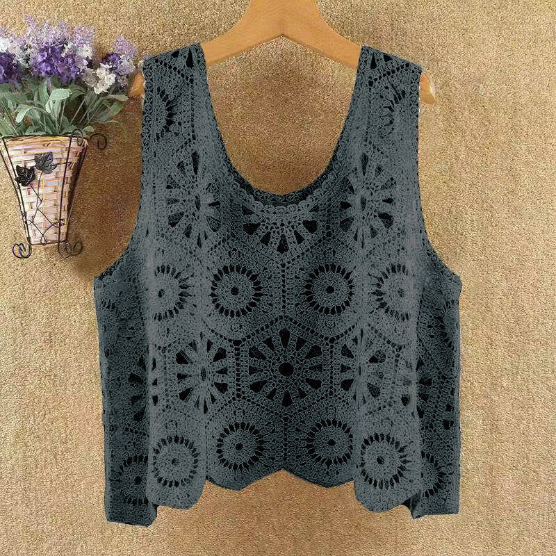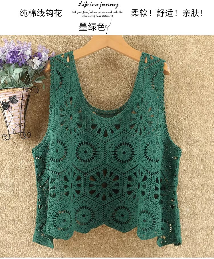 Трансграничный европейский и американский полый вязаный жилет, художественный ретро-слинг из хлопковой нити, женский свободный вязаный крючком жилет, универсальный топ