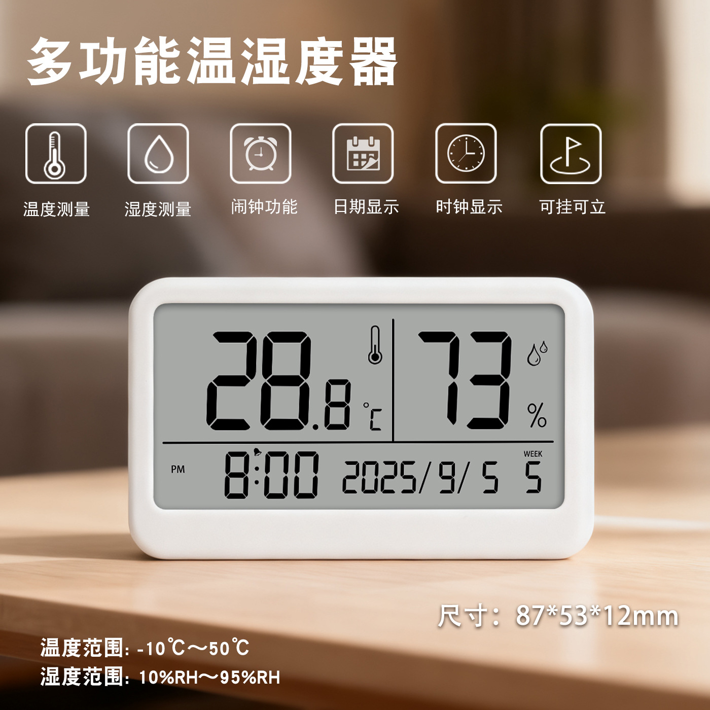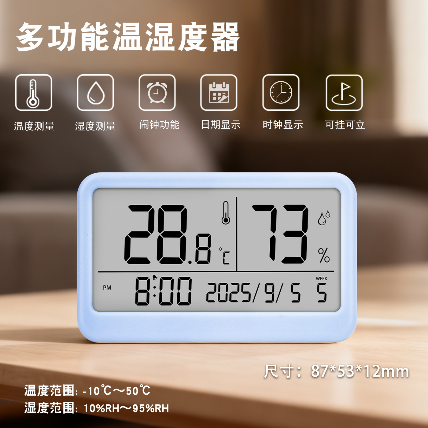 温湿度计小知识:温度正负误差1-2℃左右。 湿度50%—-70%误差正负5%,30%—50%误差正负8%。 产品热敏在通风口位置。敏感度非常大,周围环境稍微有点温差就会变动温度 ,