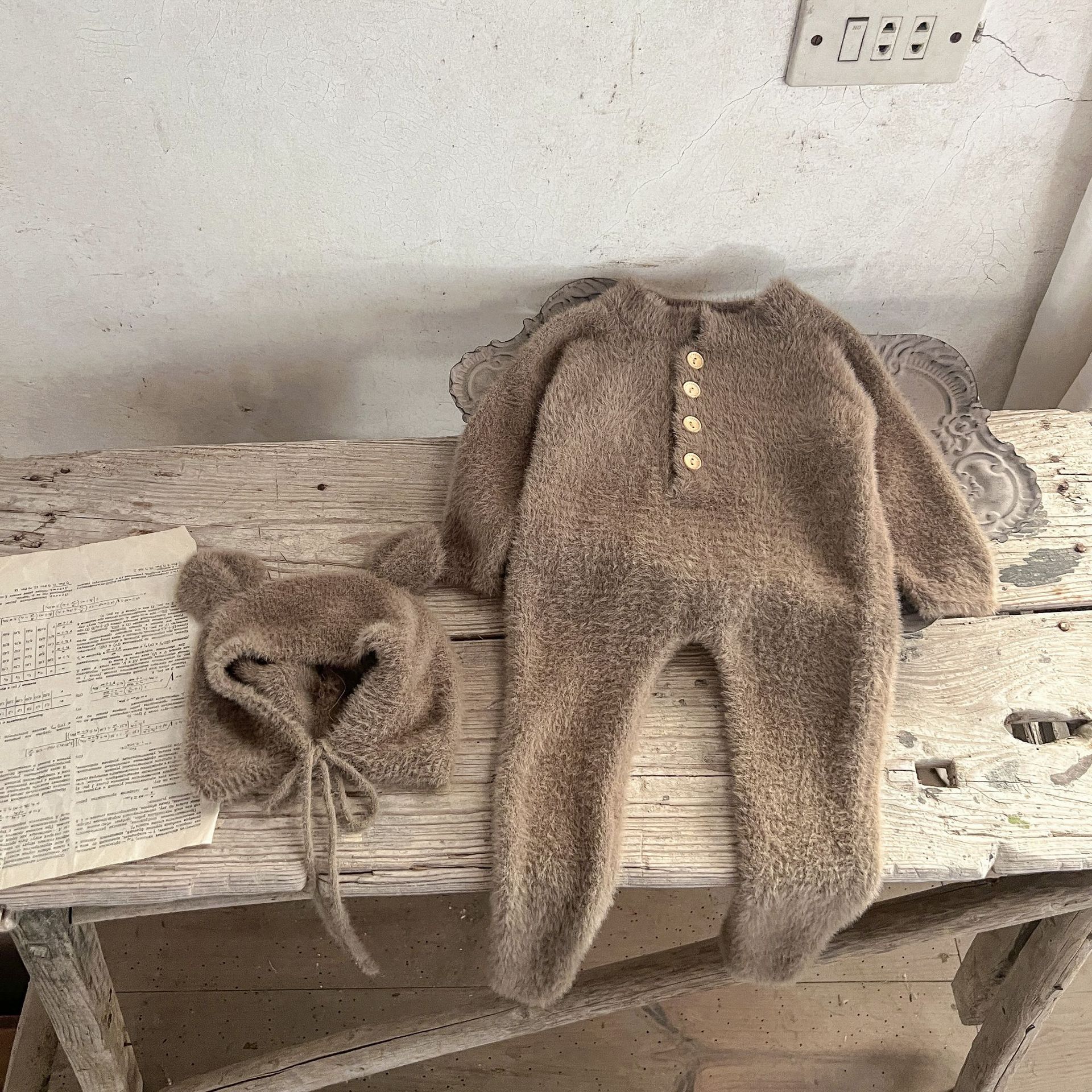 Интернет-знаменитости Детский зимний комбинезон Одежда для малышей на сто дней Норковый бархат Милая сумка с медведем Одежда для скалолазания на ногах для прогулок