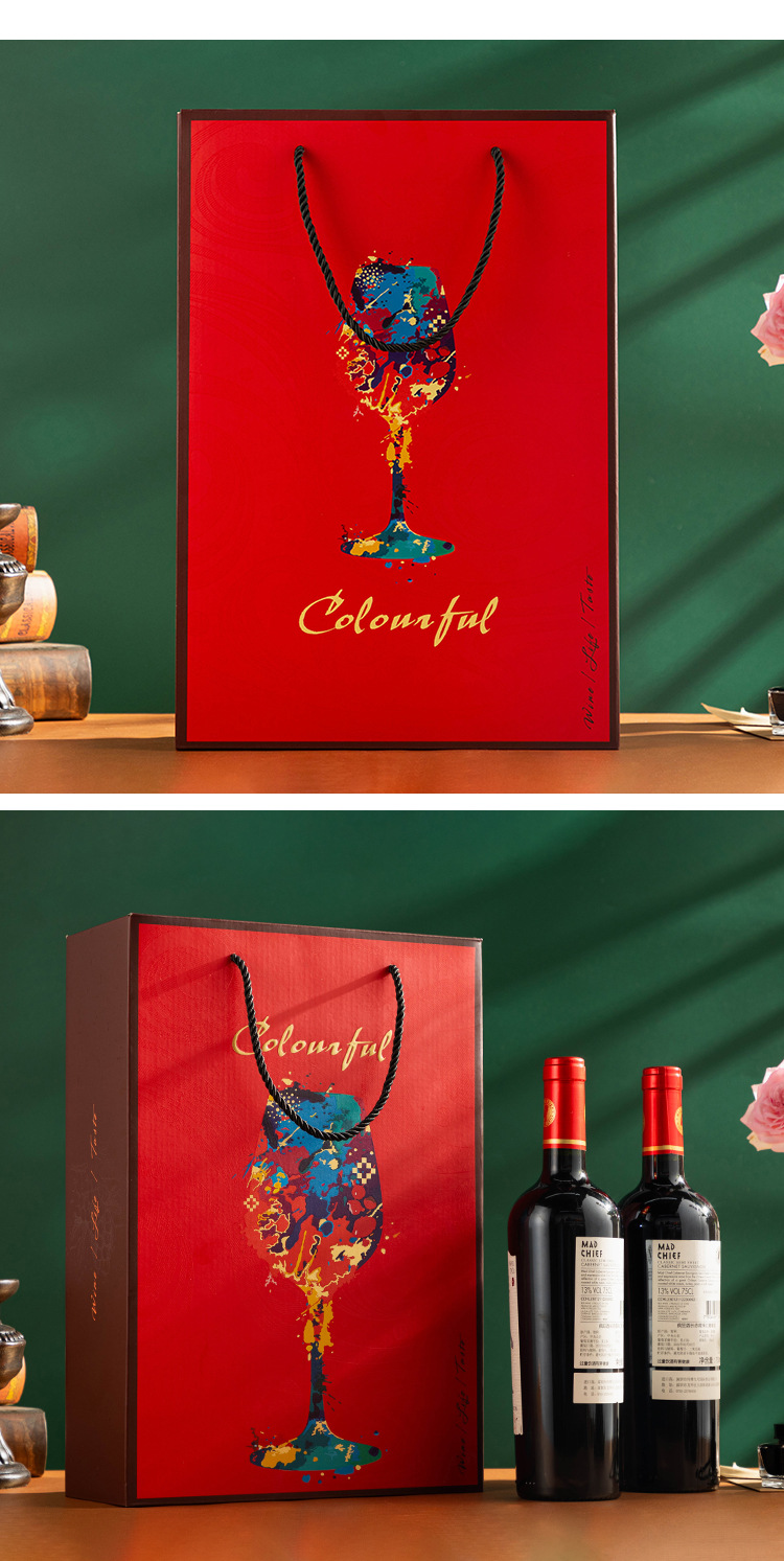 Завод в наличии красное вино упаковка подарочная коробка оптом два пакета Красного вина бумажный мешок упаковочная коробка вина коробки печати логотипа
