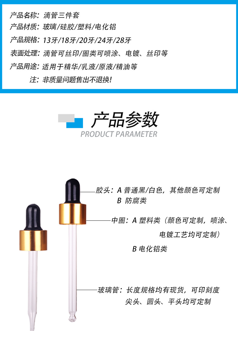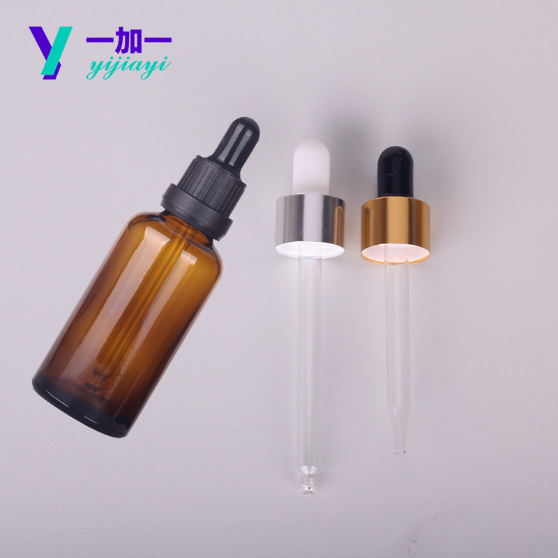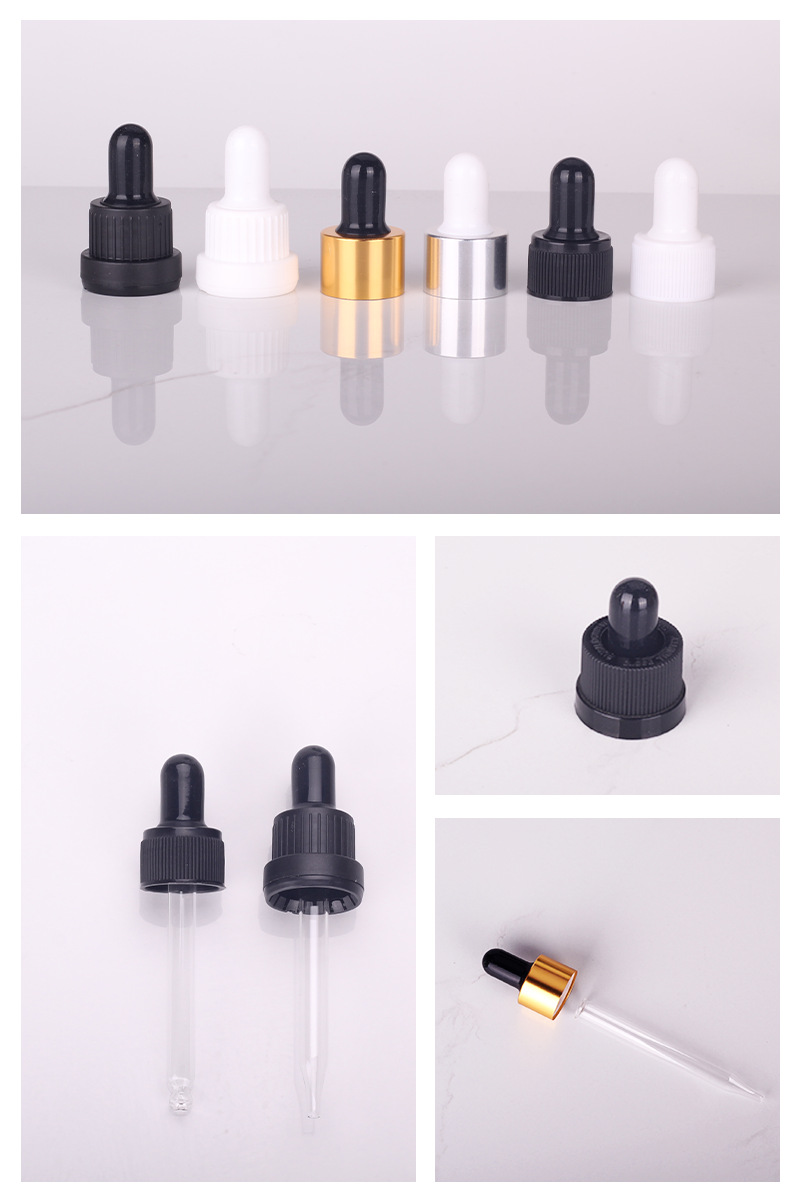 Крышка-капельница для флакона с эфирным маслом, 18 зубцов, резиновая головка, анодированный алюминий, золотое кольцо, черная вертикальная полоса, среднее кольцо, глянцевая черная резиновая головка, стеклянная капельница