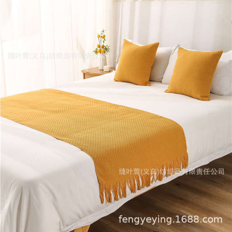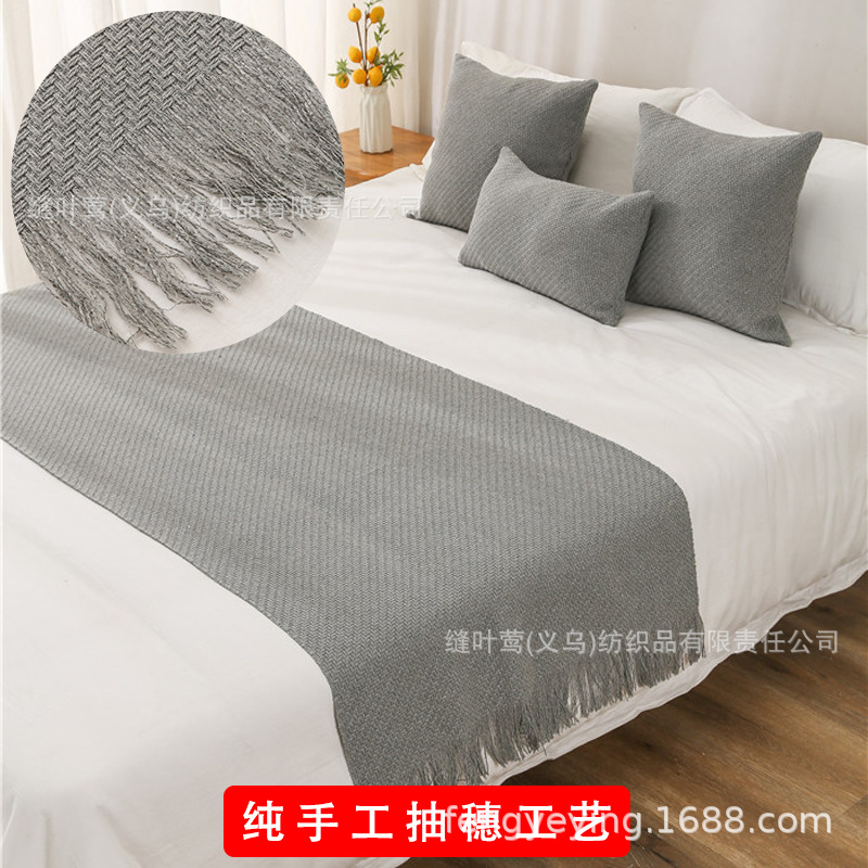 Покрывало на кровать однотонное однослойное с кисточками для отелей и гостевых домов, декоративное, в стиле инс