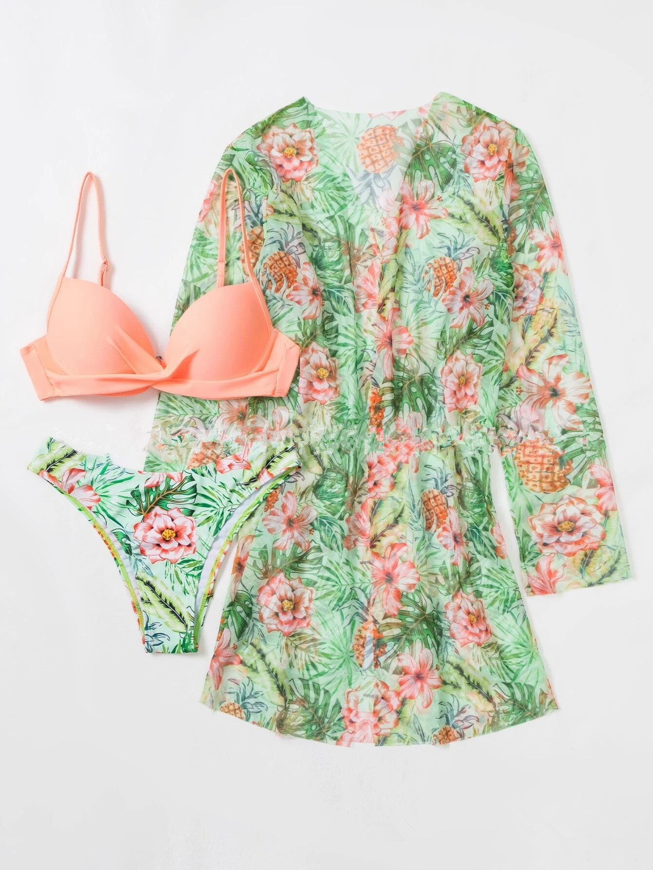 Купальники 2023. Европейский и американский женский кардиган на подтяжках. Бикини из трех частей. Защита от солнца. Отдельные купальники с высокой талией.