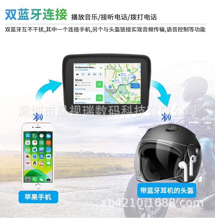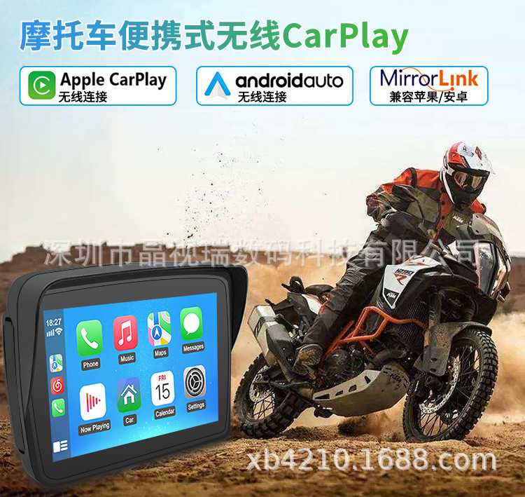 Беспроводной CarPlay для мотоциклов 5inch с отсоединяемым портативным навигационным экраном, водонепроницаемый дисплей высокой четкости для езды на мотоцикле