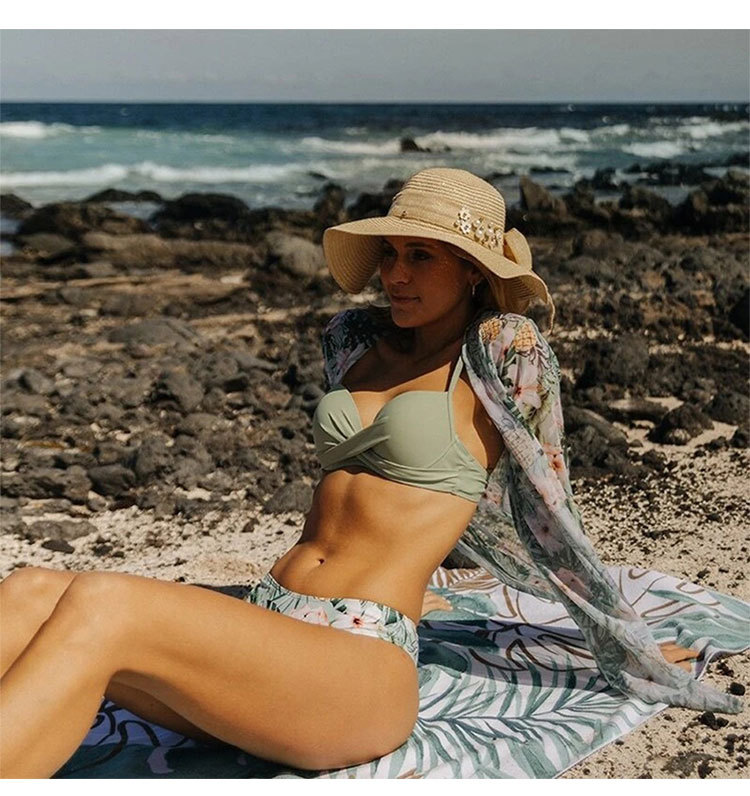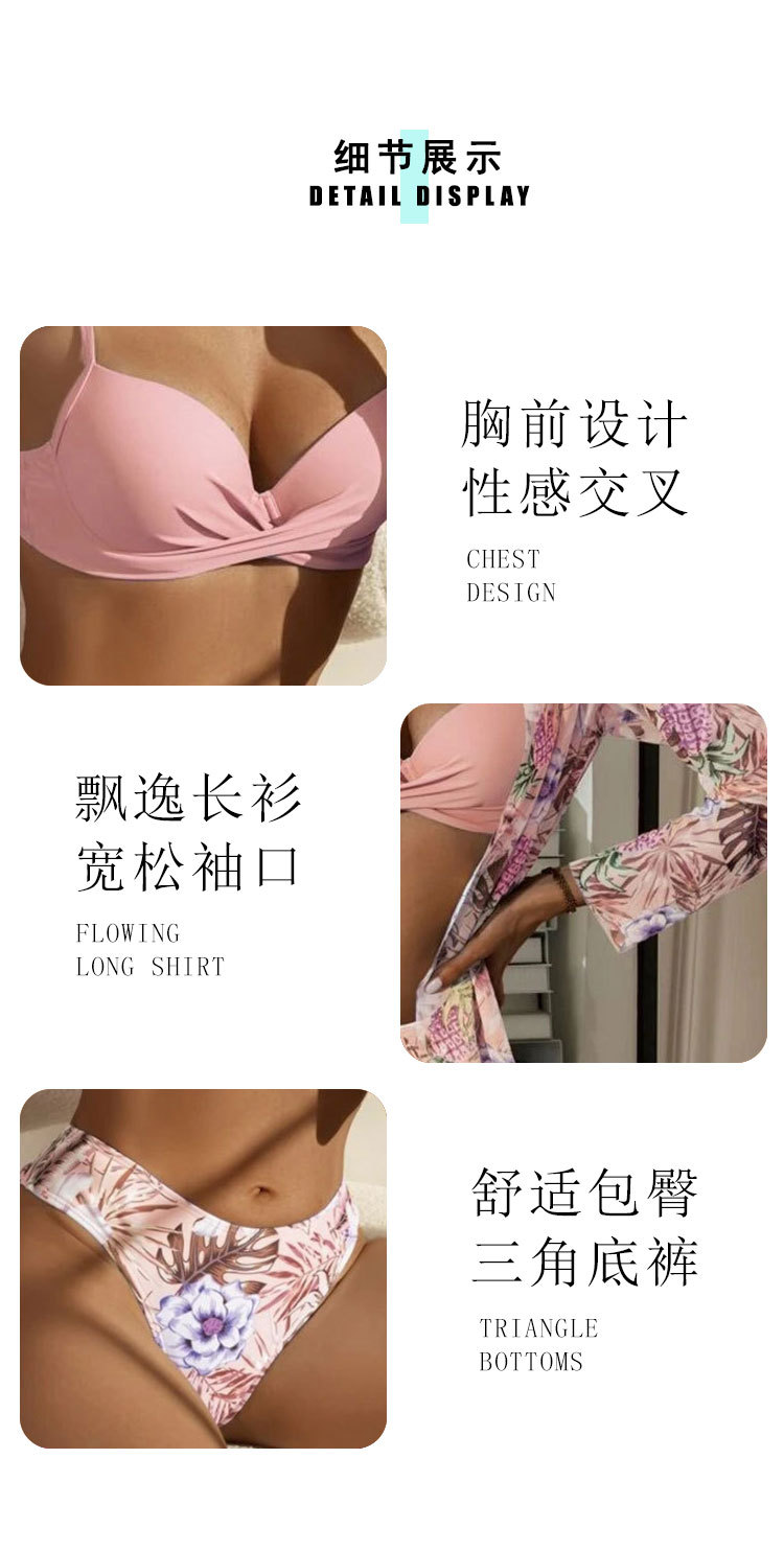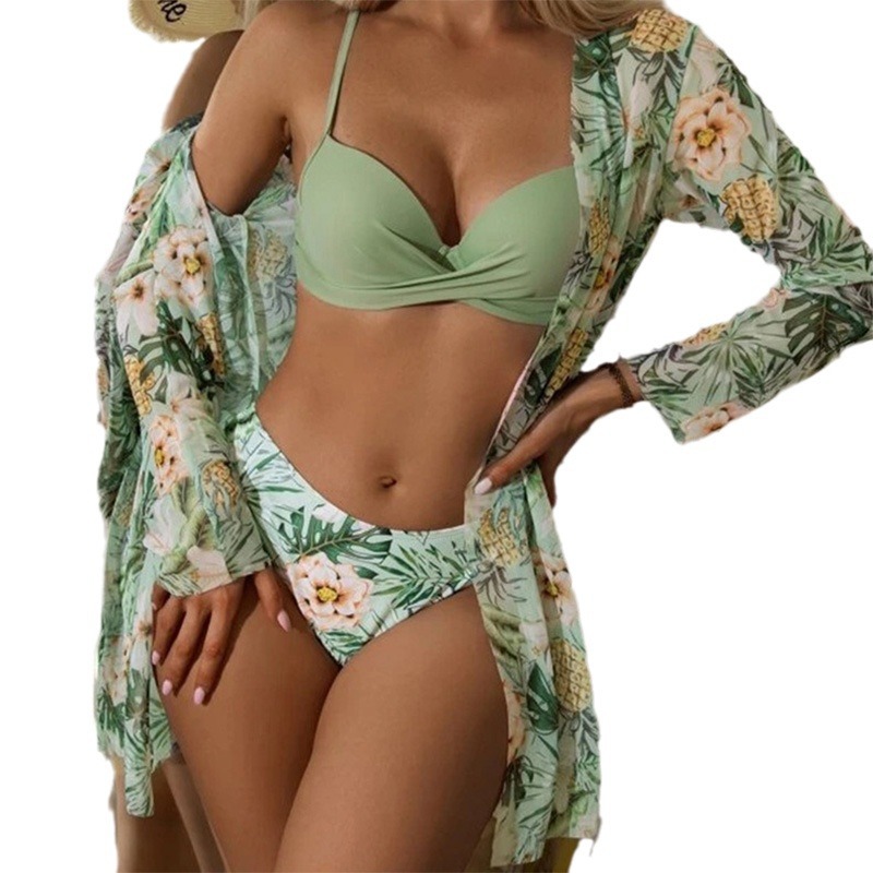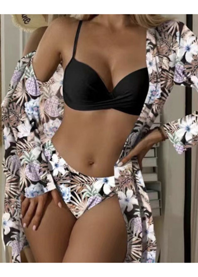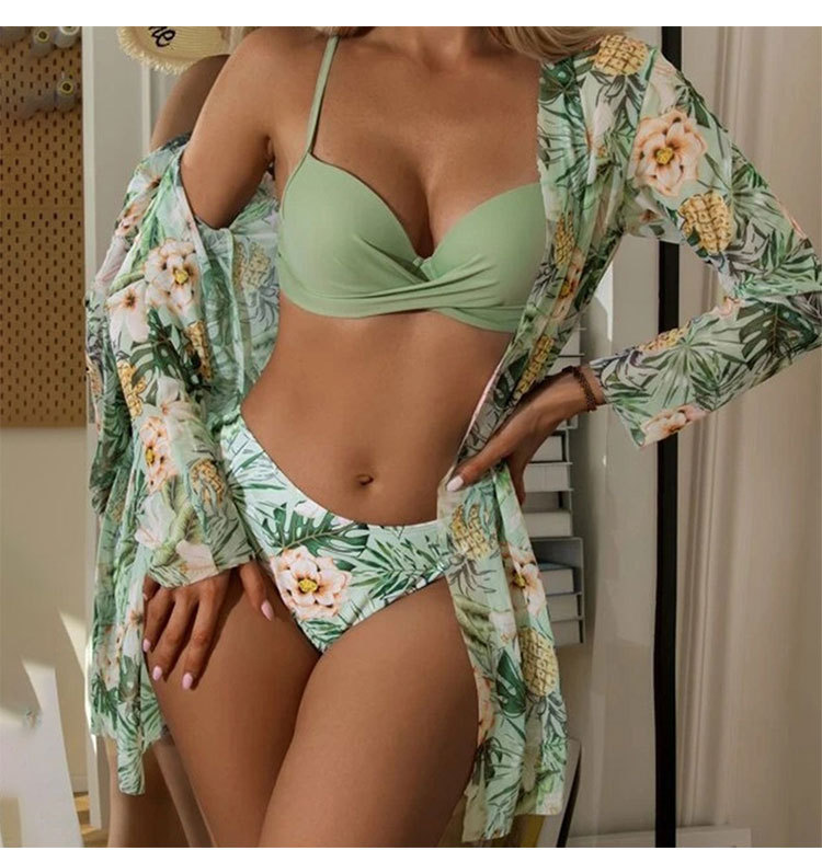 2023 Новый трансграничный купальник Комплект из трех предметов Европейский и американский женский купальник с принтом с разрезом Европейское и американское бикини