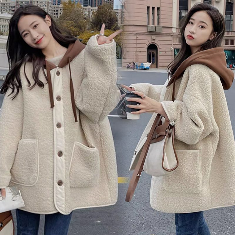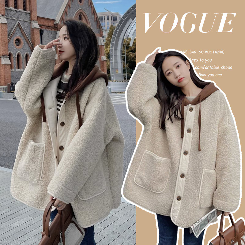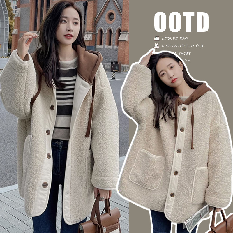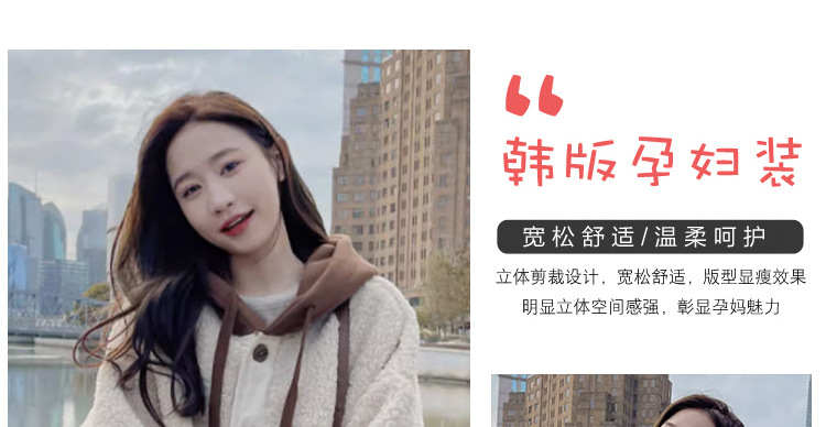 Теплое пальто из утолщенной овечьей шерсти для беременных на осень и зиму, Повседневная Свободная Толстовка в западном стиле, Южная Корея, модный маминый Топ