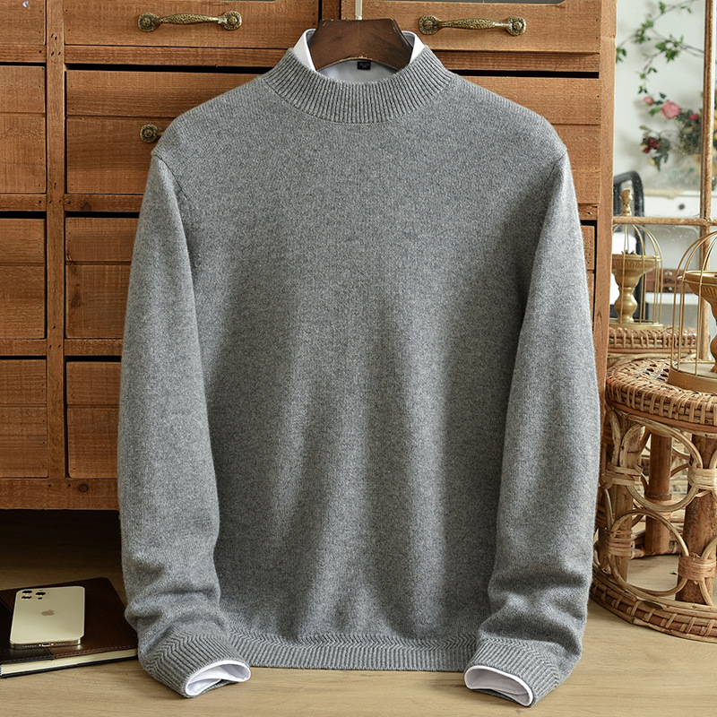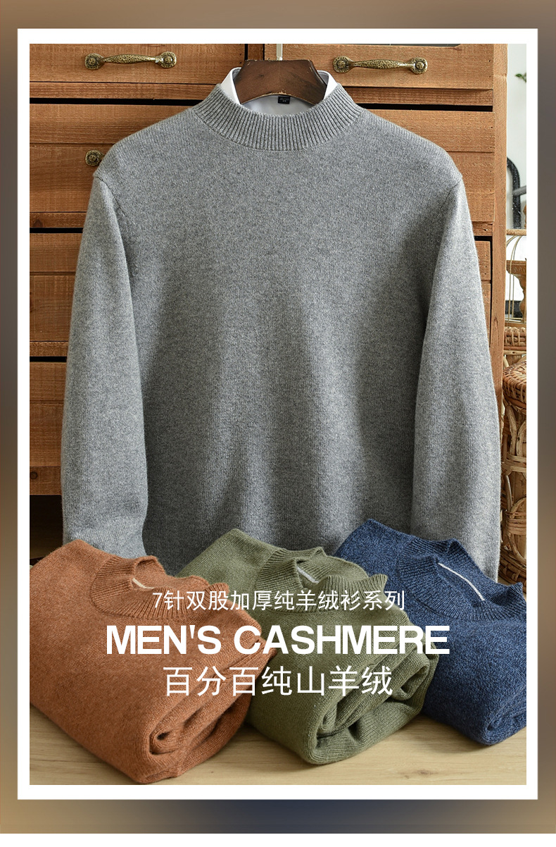 Кашемировый свитер с половиной воротника мужской чистый кашемир утолщен