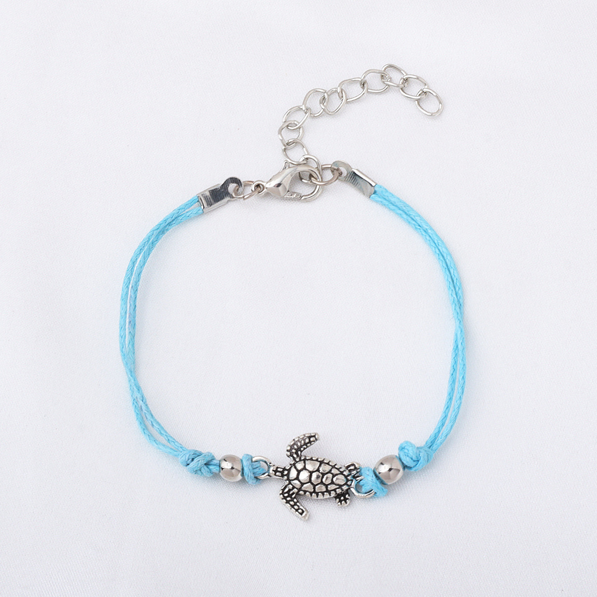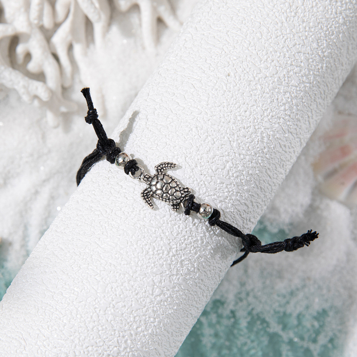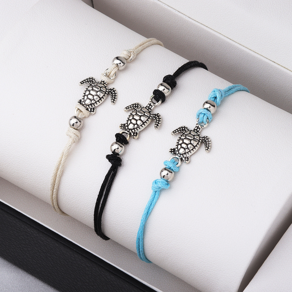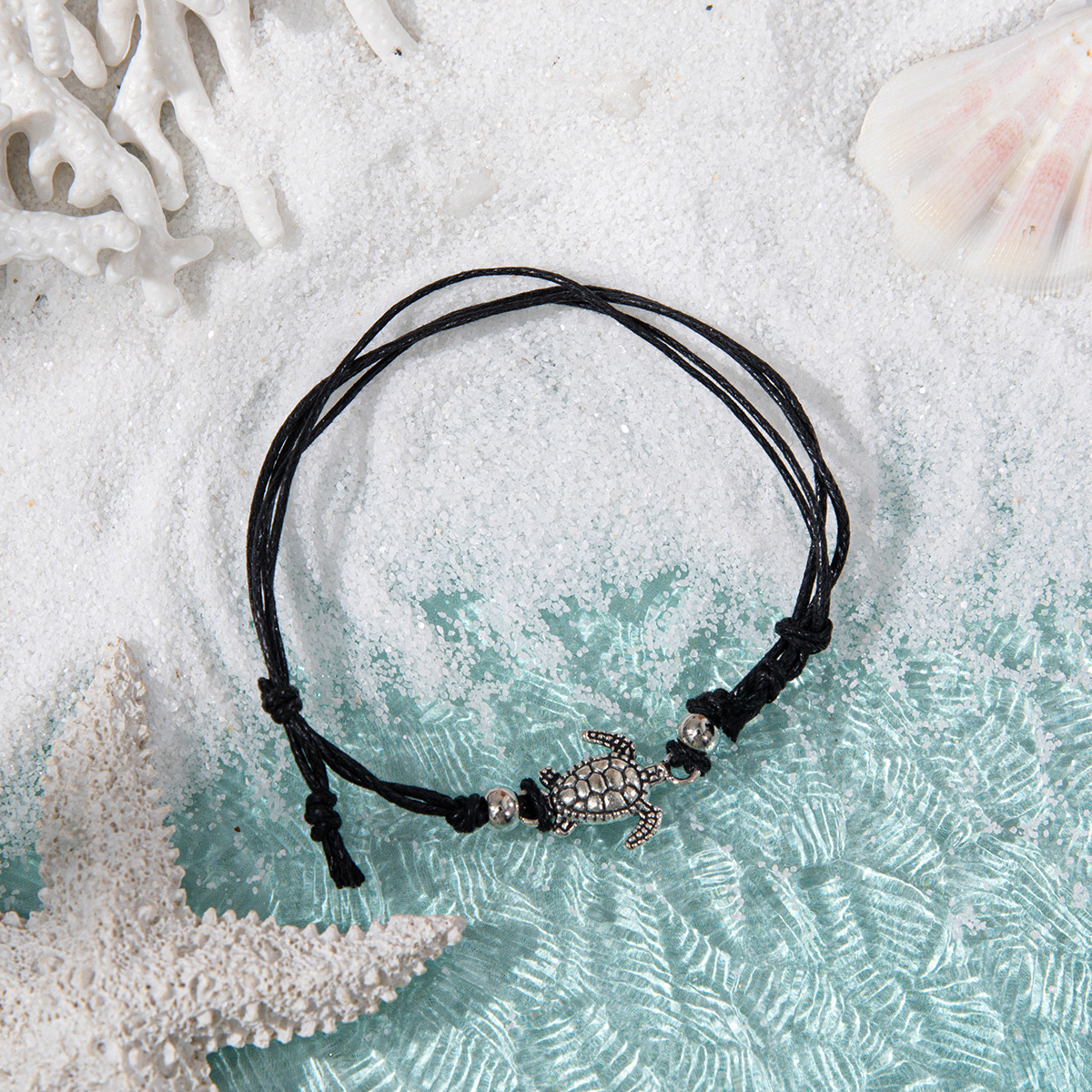 Популярные трансграничные браслеты для женщин, пляжные украшения, древние серебряные трехцветные черепахи, плетеные украшения для ног из восковой веревки, модный браслет-черепаха