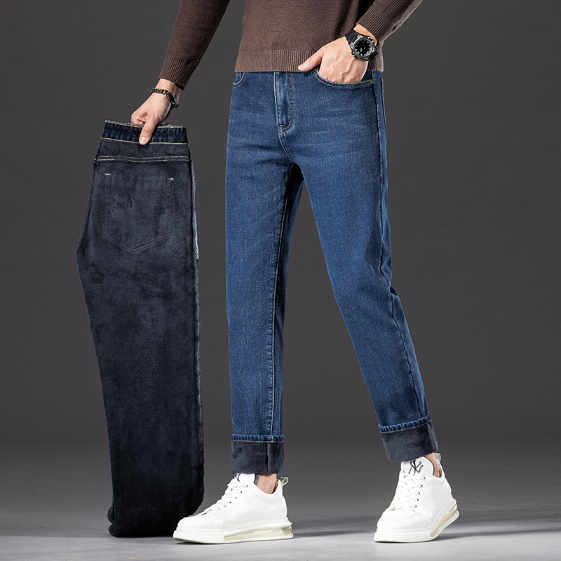 Мужские зимние джинсы на флисовой подкладке, утепленные, цельное флисовое утепление, прямой крой, теплые повседневные брюки средней посадки JR561