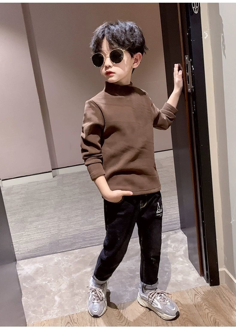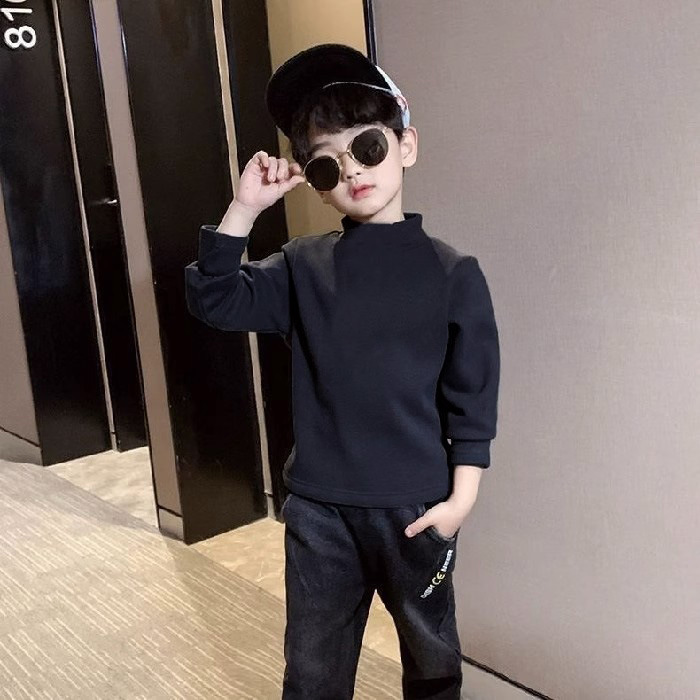 Детская флисовая Базовая рубашка с половинным воротником и флисовой подкладкой Теплая Одежда для мальчиков Толстовка Топ Осенне-зимняя детская футболка Осенняя одежда