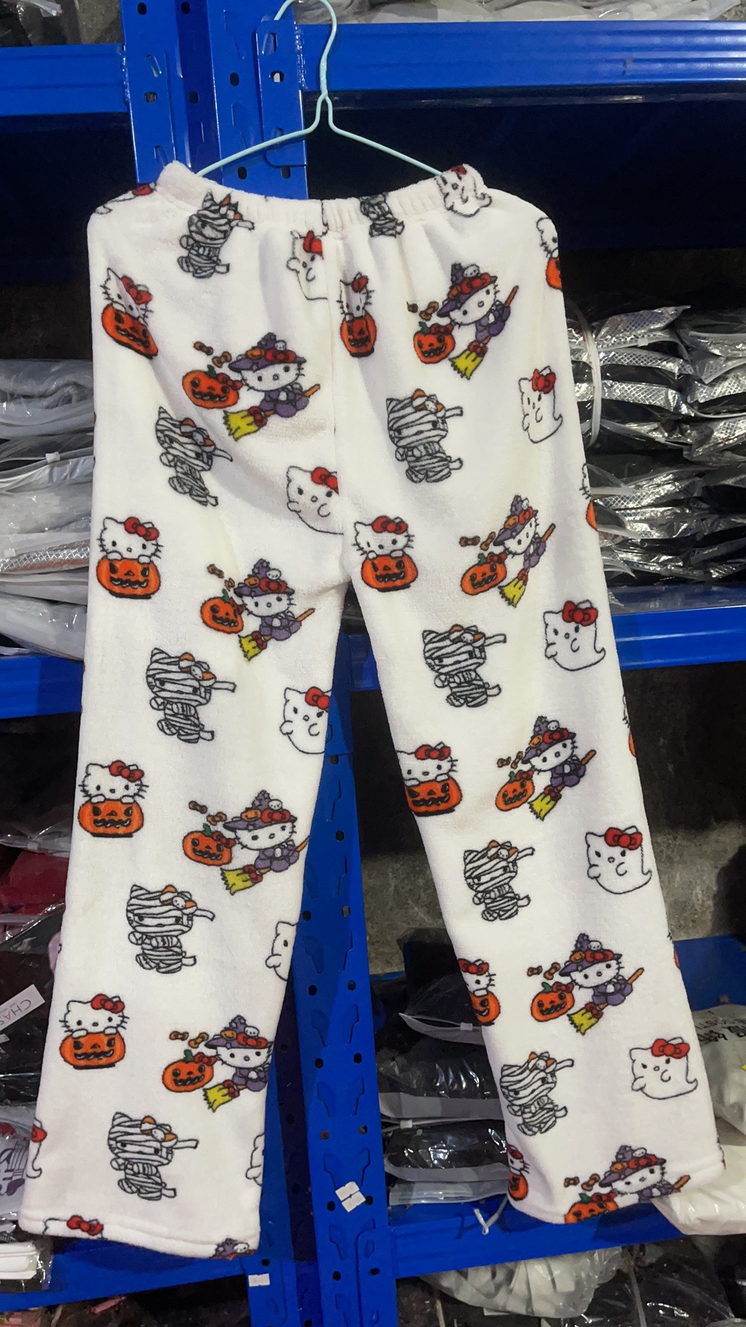 Внешняя торговля Хэллоуин мультфильм KT кошка фланелевые пижамы женские осенне-зимние теплые повседневные домашние брюки с граффити на флисовой подкладке