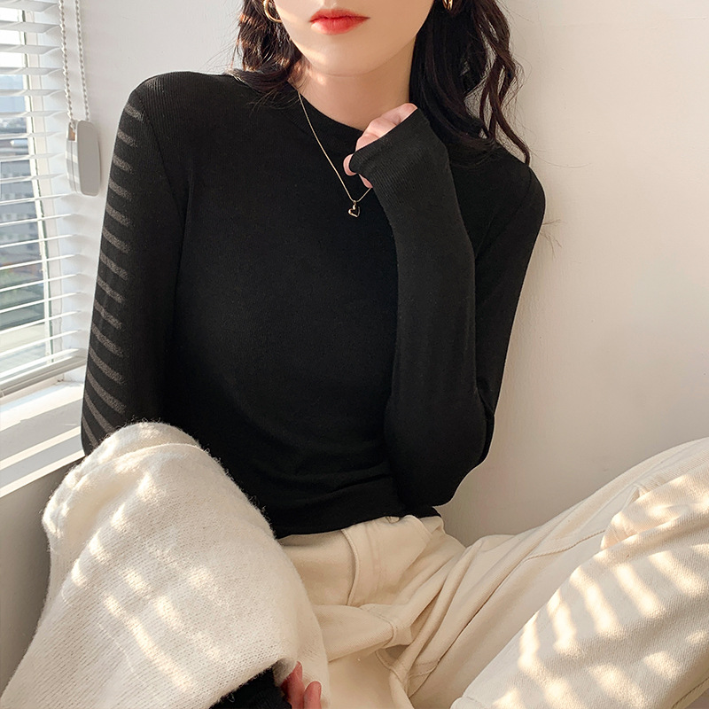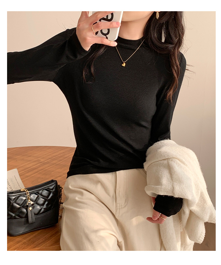Футболка с длинным рукавом Женская утолщенная нижняя рубашка Весна и осень новая верхняя одежда с круглым воротником-стойкой внутренняя одежда свободная зимняя верхняя одежда для похудения