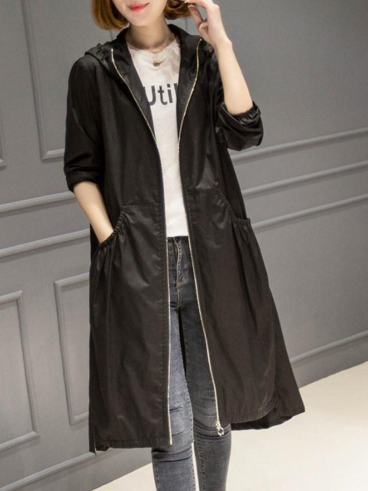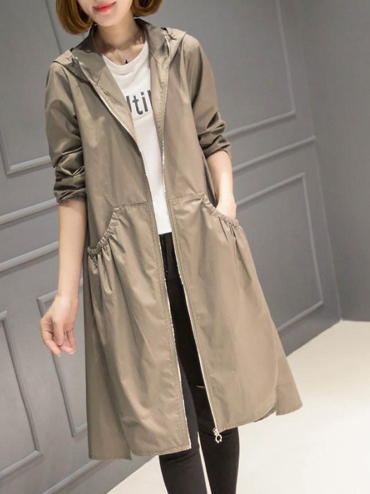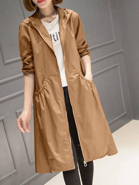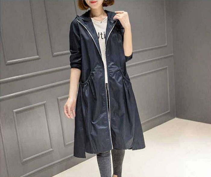 Новинка 2024 года, осенняя тонкая весенняя женская ветровка средней длины выше колена с капюшоном, свободная верхняя одежда большого размера