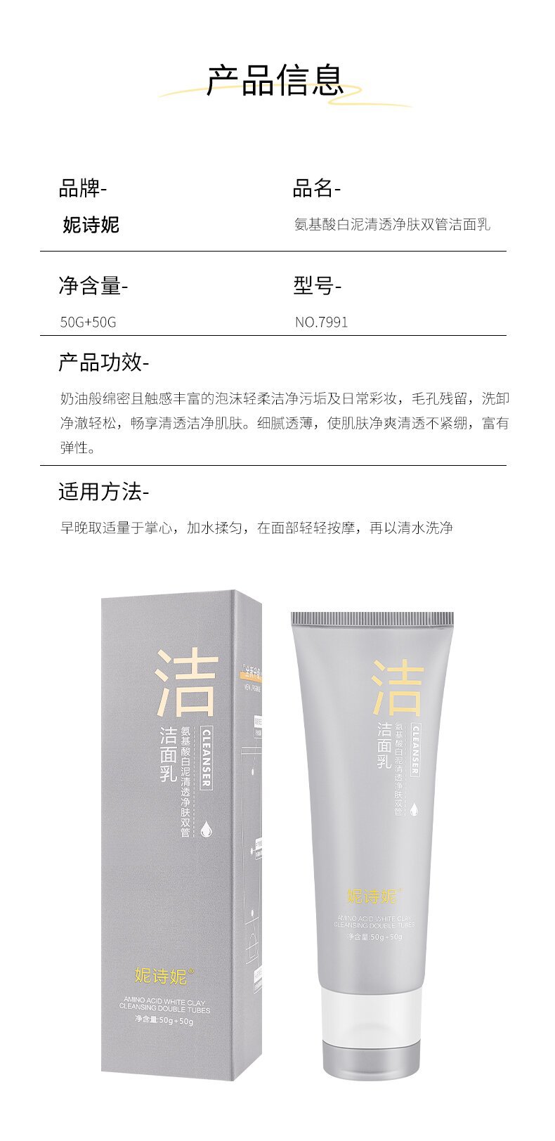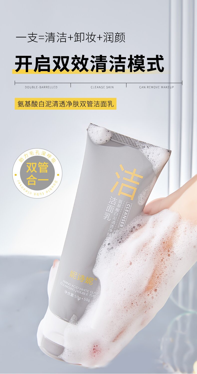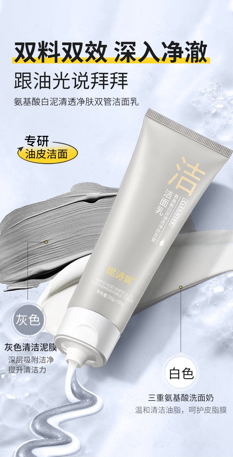 Douyin горячее двухтрубное очищающее средство для лица Ni Shini аминокислоты двухтрубное очищающее средство для лица очищающее масло для контроля черных точек