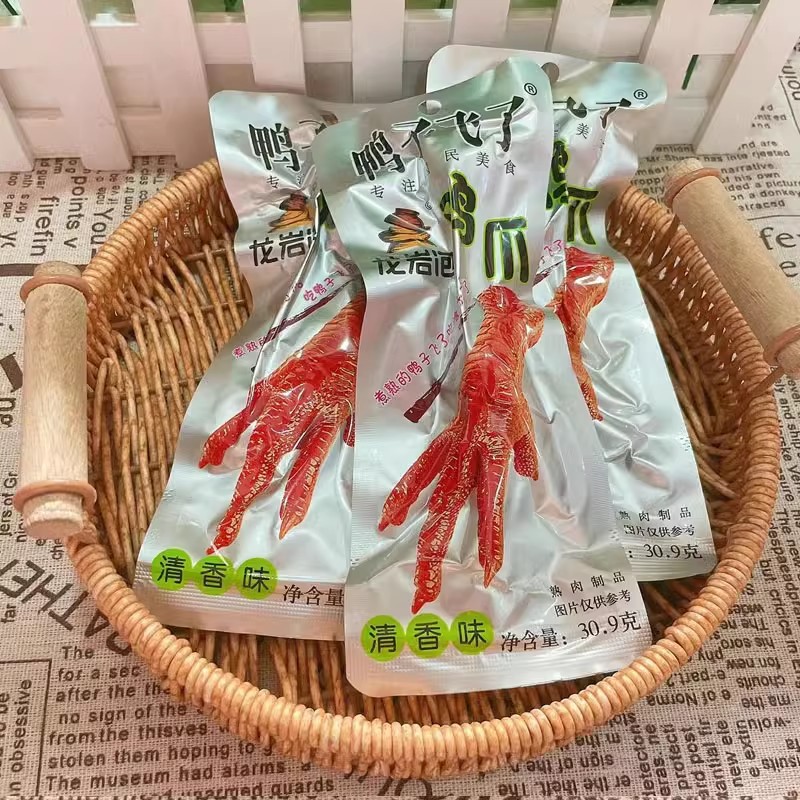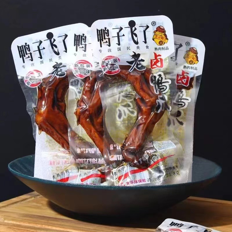 Утка летит с утиной коготкой; Утка летит, чтобы замочить утиные крылышки; Тигровая шея; Черная утка ароматная шея; Сладкая и сладкая шея; Пряные куриные ножки; Пивная версия с острыми и кислыми куриными ножками; Утиный теленок со вкусом меда; Соленая золотая нога; Ароматные утиные когти; Ароматные утиные крылышки; Корень утиных крылышек; Пряные утиные когти; Куриные ножки с ароматом; Утка летит старый тушеный утиный коготь