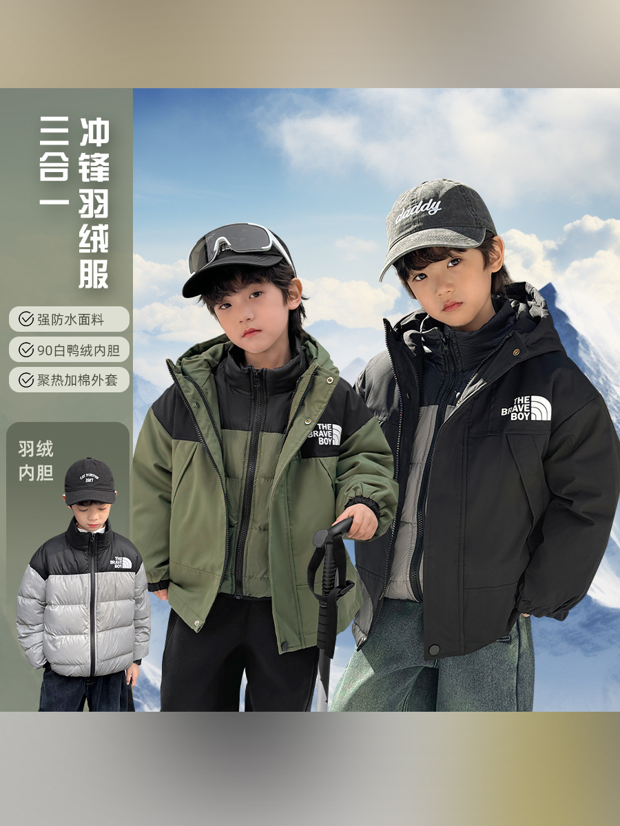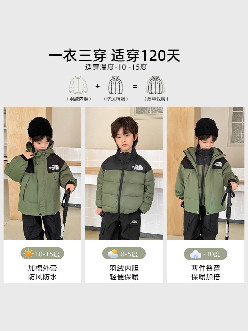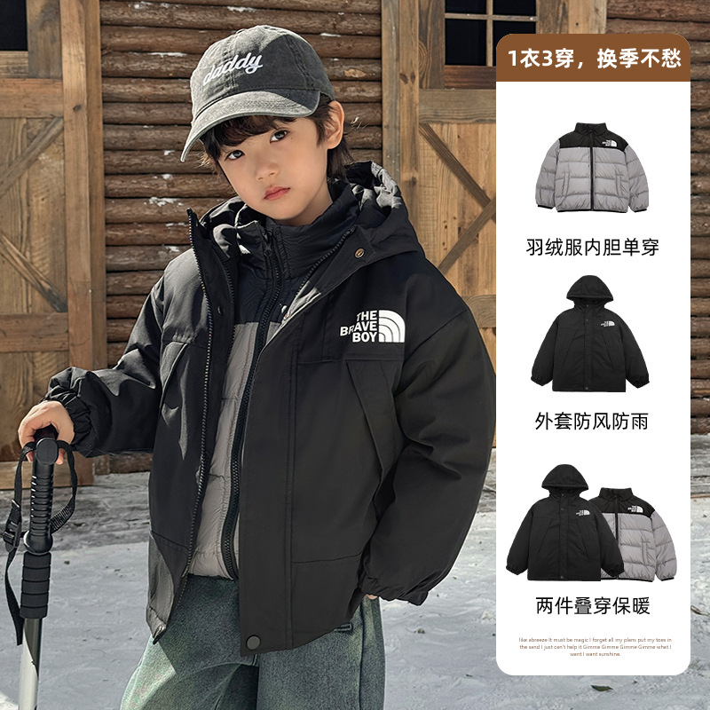 【Выгодное предложение】Модная детская куртка-трансформер 3-в-1: утепленный пуховик, хлопковая куртка и зимняя ветровка для детей постарше