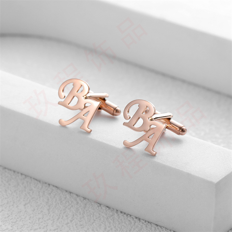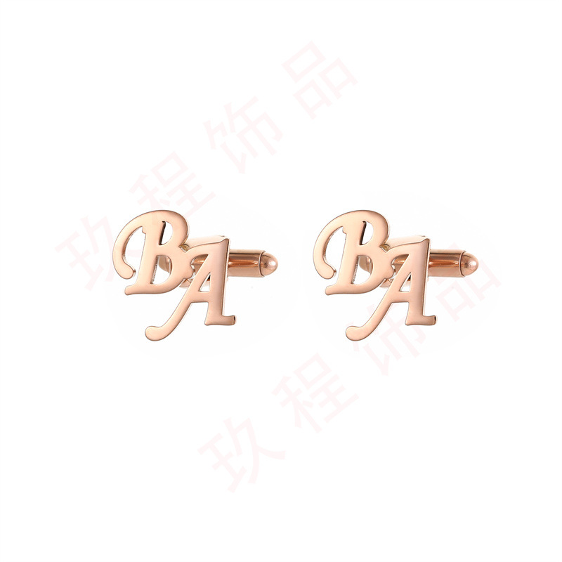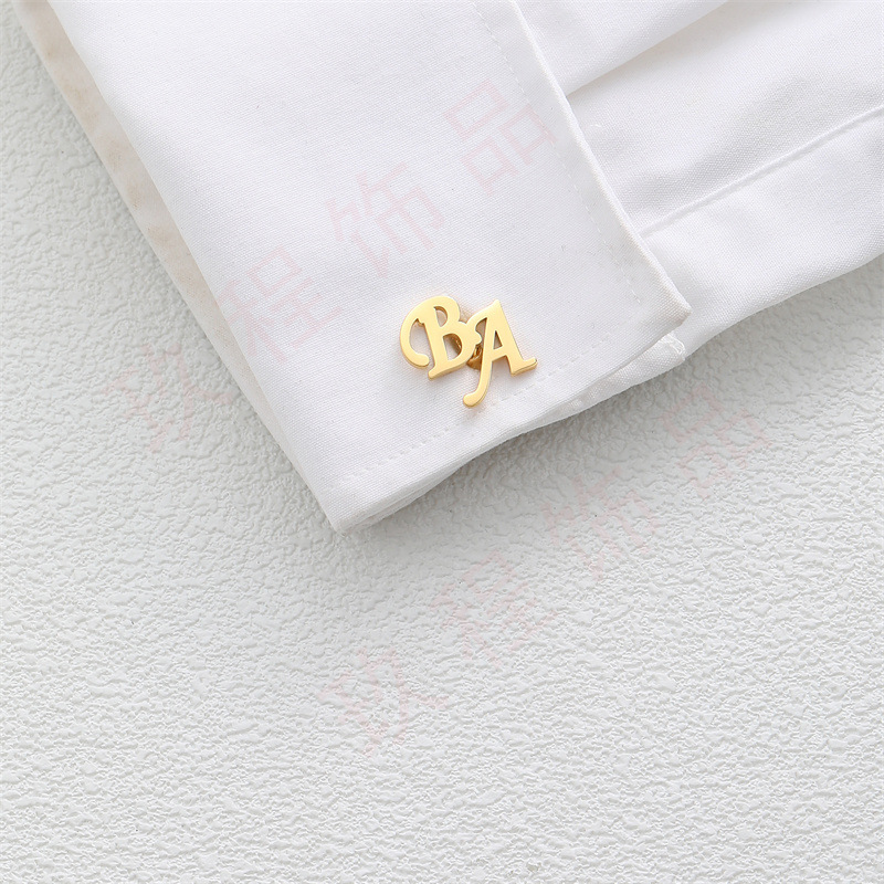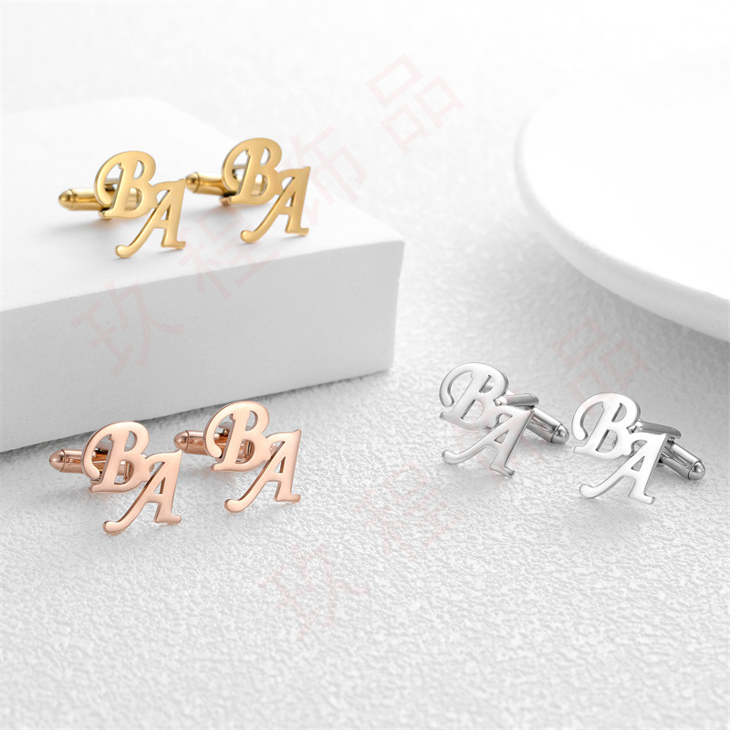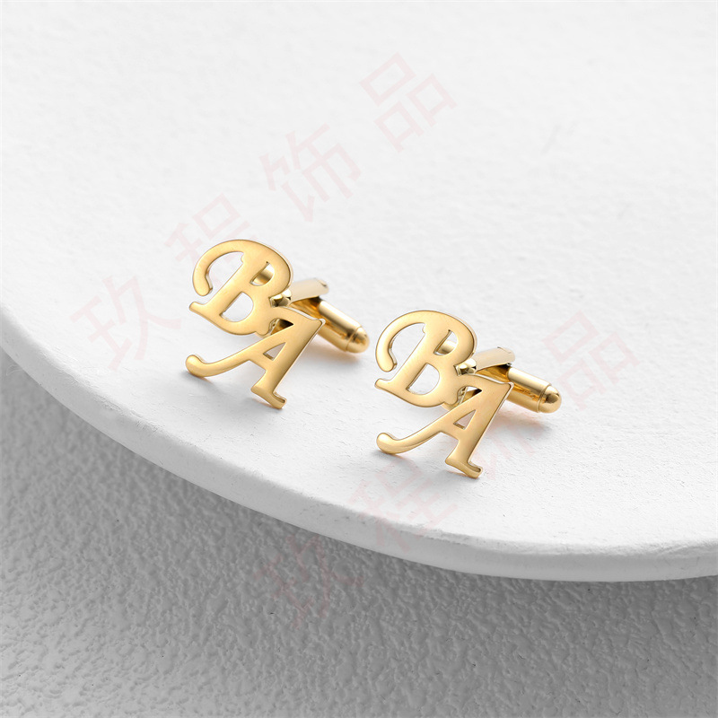 [Один кусок Настроенный】 Сделай сам французские мужские запонки из нержавеющей стали с гальваническим покрытием из 18-каратного золота Новые английские запонки с буквами