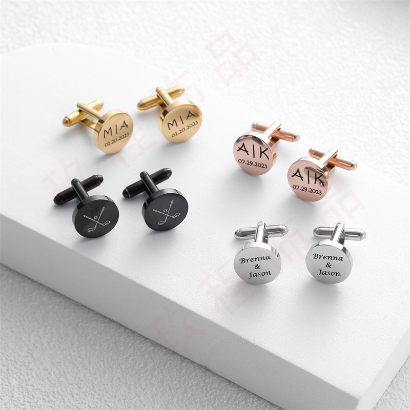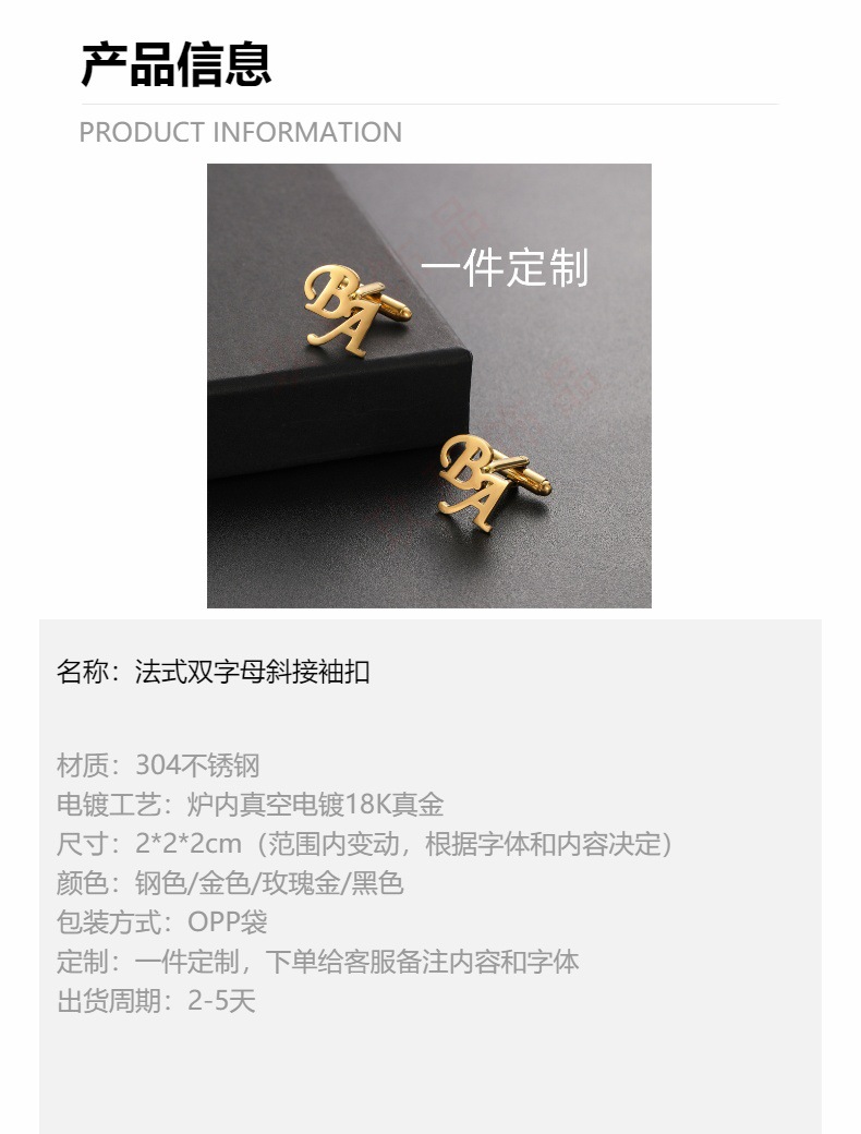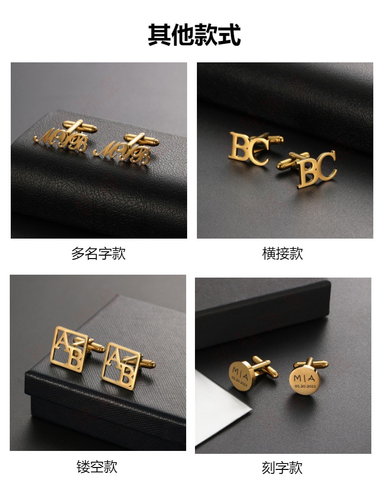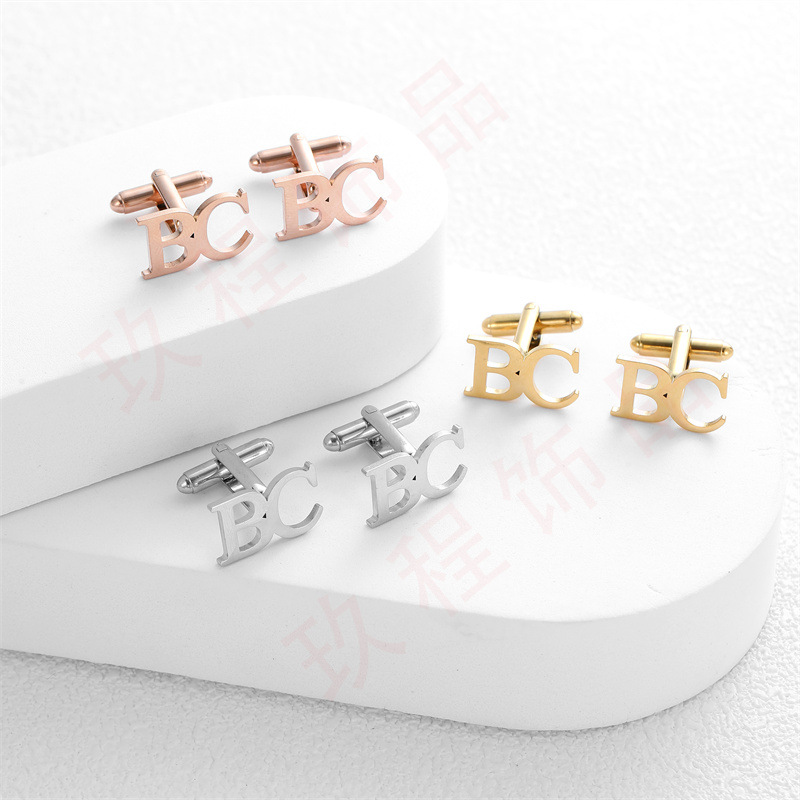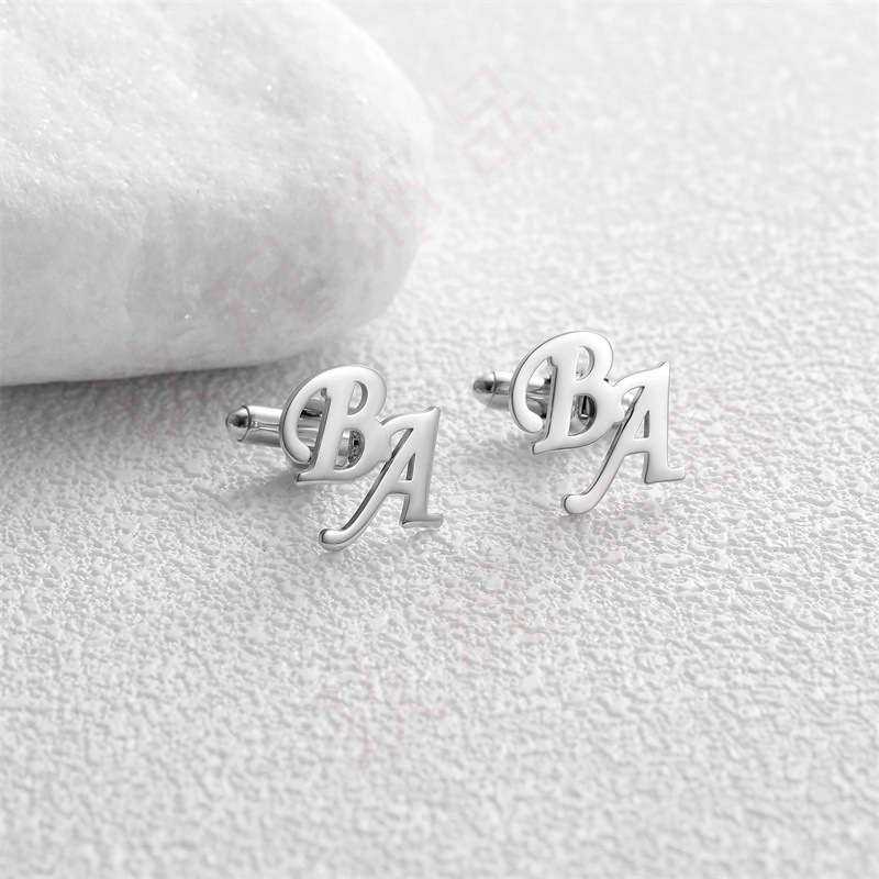 [Один кусок Настроенный】 Сделай сам французские мужские запонки из нержавеющей стали с гальваническим покрытием из 18-каратного золота Новые английские запонки с буквами