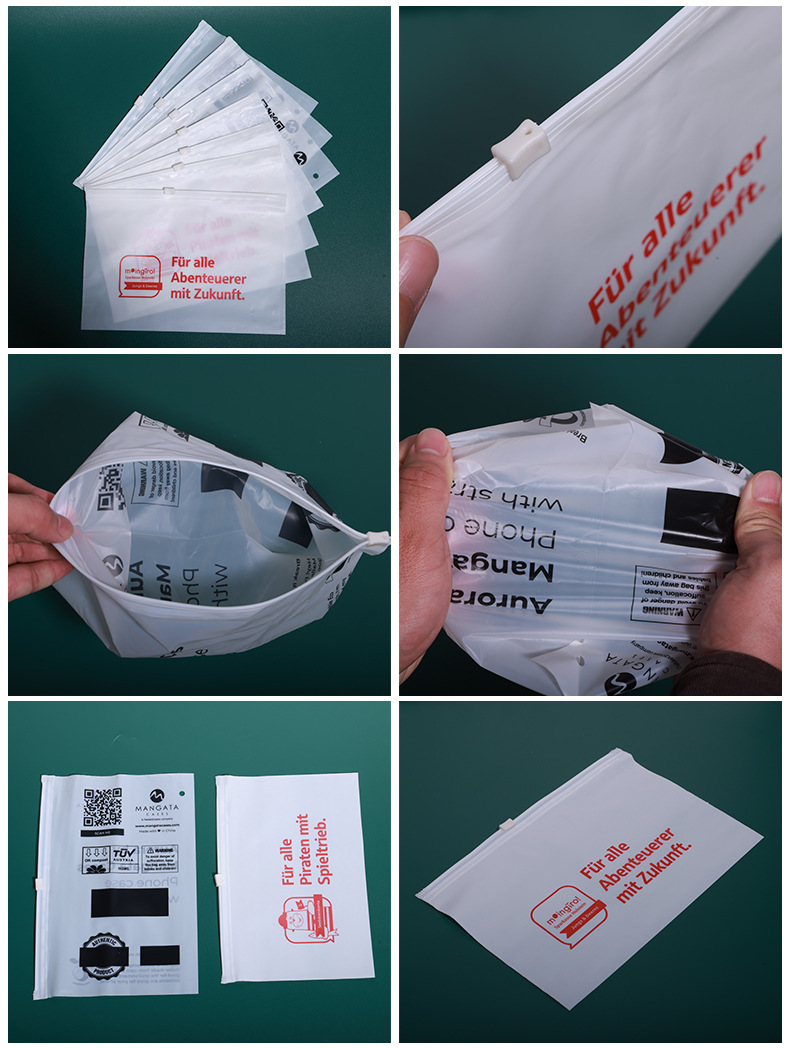 Производитель полностью биоразлагаемых пакетов на молнии, белые матовые самозакрывающиеся пакеты для упаковки одежды и носков, с возможностью индивидуального заказа, экологически чистые.