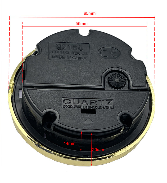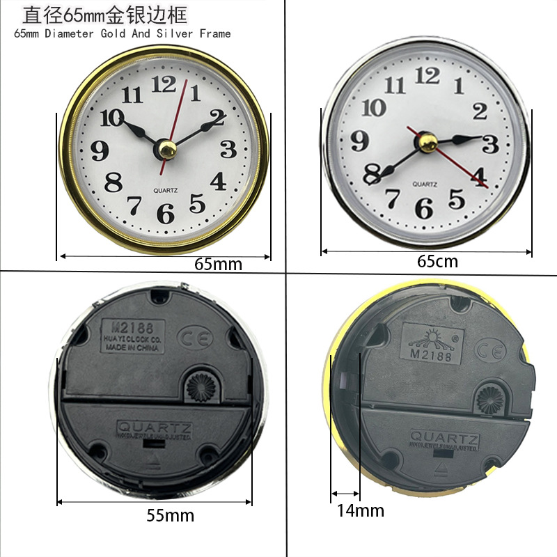 钟头规格:1、正面直径65mm、后盖直径55mm 安装深度14mm