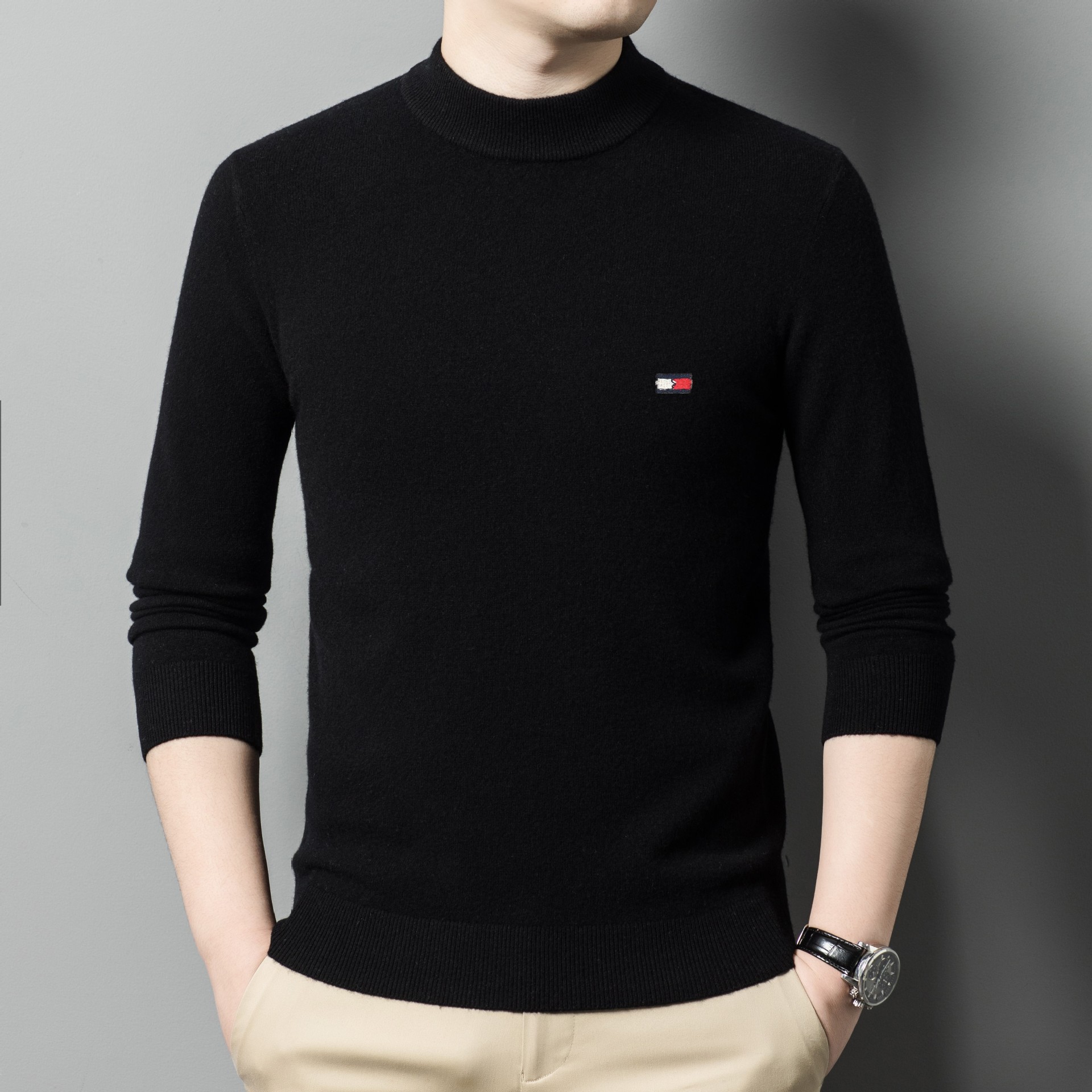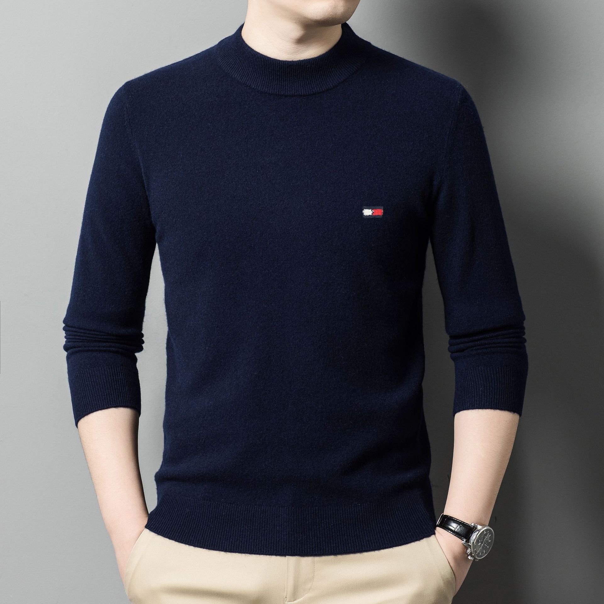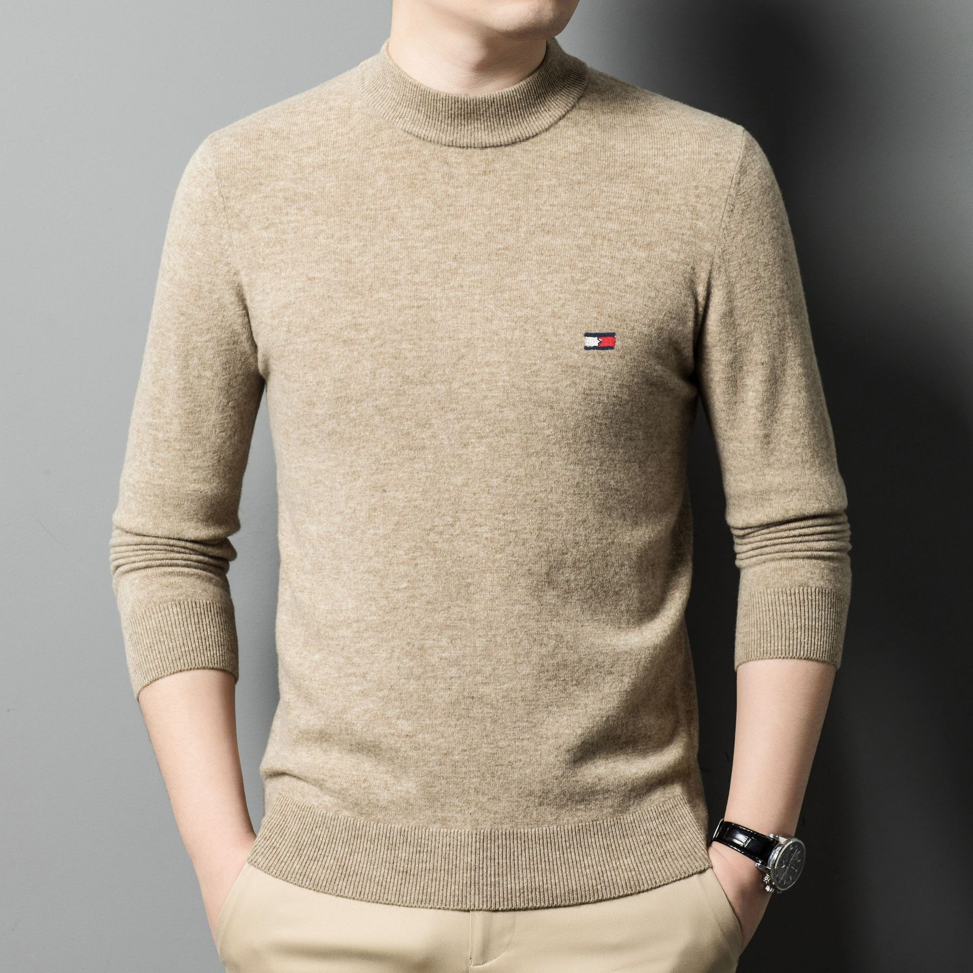 Мужской бархатный свитер Tommy Xikelly, свитер с вышивкой, осенне-зимний пуловер с круглым вырезом, новый вязаный толстый